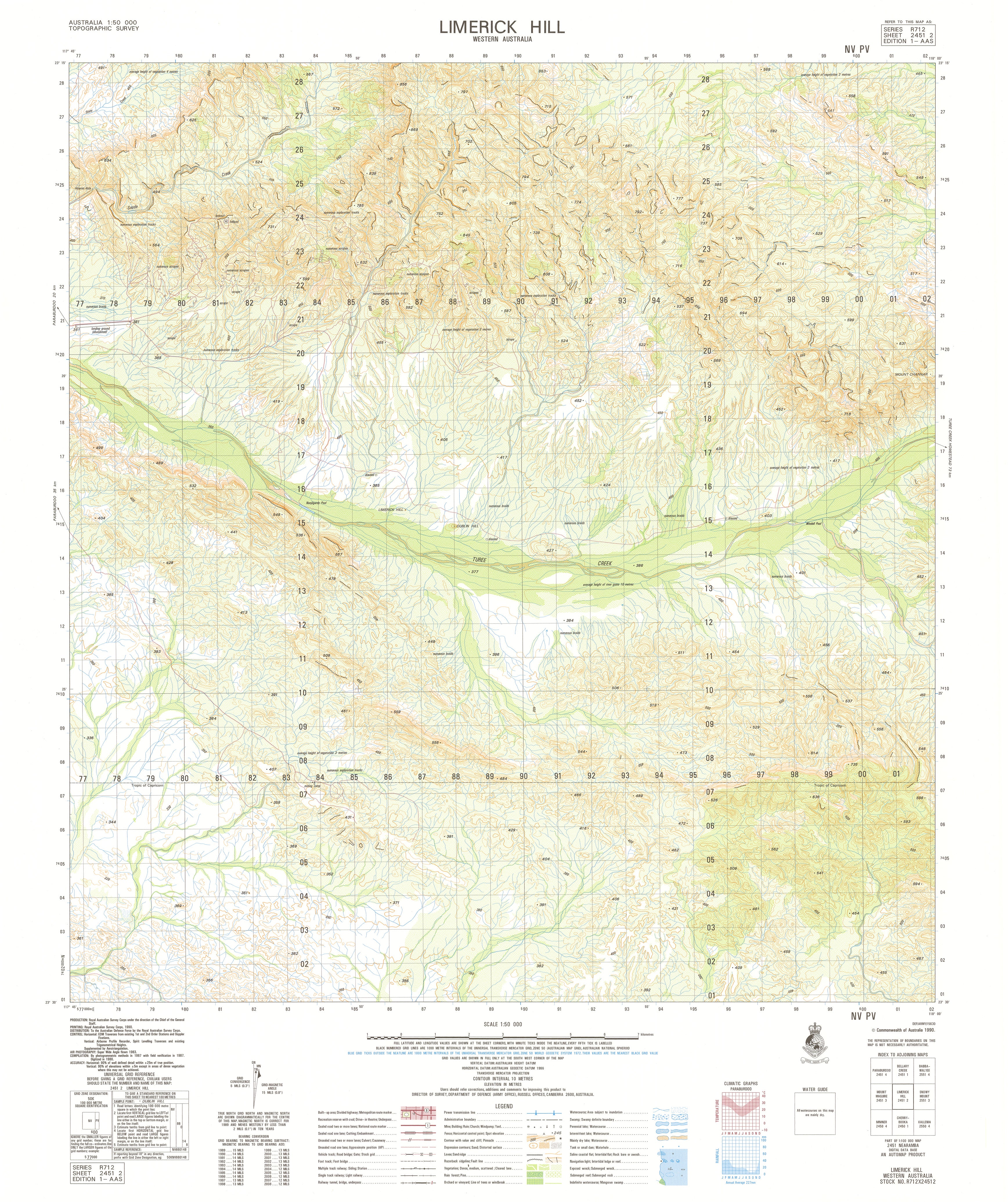 The 2451-2 Limerick Hill 1:50,000 topographic sheet provides clear, authoritative mapping across an inland region characterised by elevated ridge lines, broad plains, creek systems, sparse vegetation and extensive pastoral holdings. As part of Australia’s national 1:50k mapping program, this sheet delivers the dependable geographic detail required for emergency response, environmental assessment, engineering planning, land management and remote-area navigation.