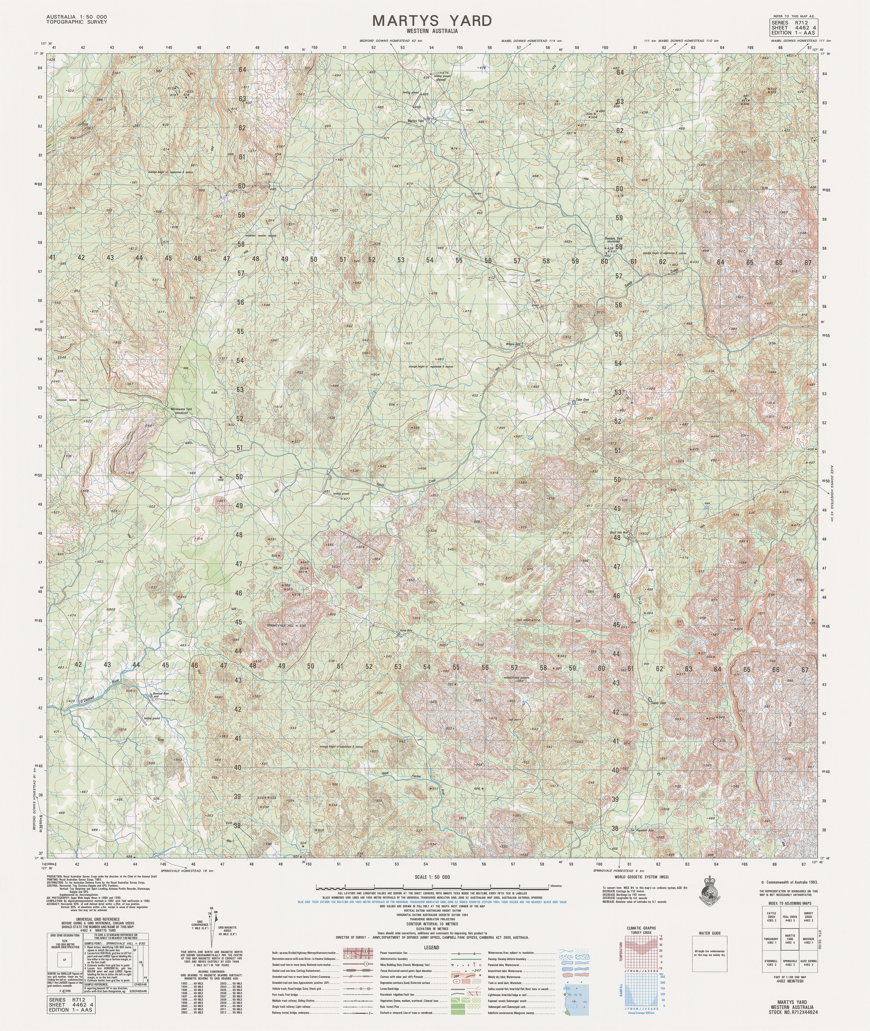 The 4462-4 Martys Yard — 1:50,000 Topographic Map provides essential mid-scale mapping across a broad inland environment defined by plains, subtle rises and ephemeral drainage systems. With detailed contours, hydrology, vegetation mapping and durable print formats, it is a valuable resource for emergency teams, surveyors, environmental specialists, pastoral operators and outback navigators.