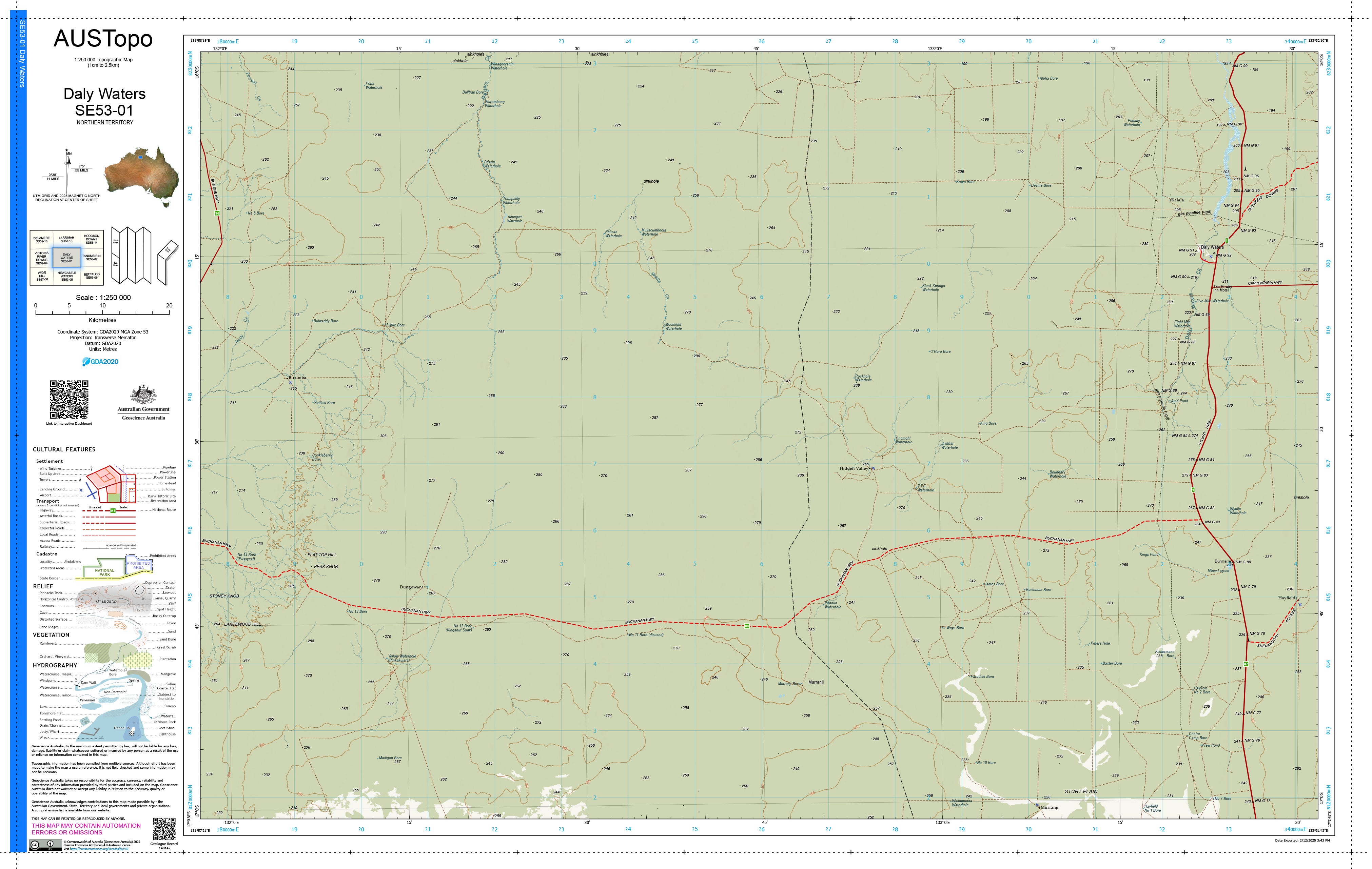 Daly Waters E5301 — AUSTopo 1:250,000 Topographic Map (2025)
