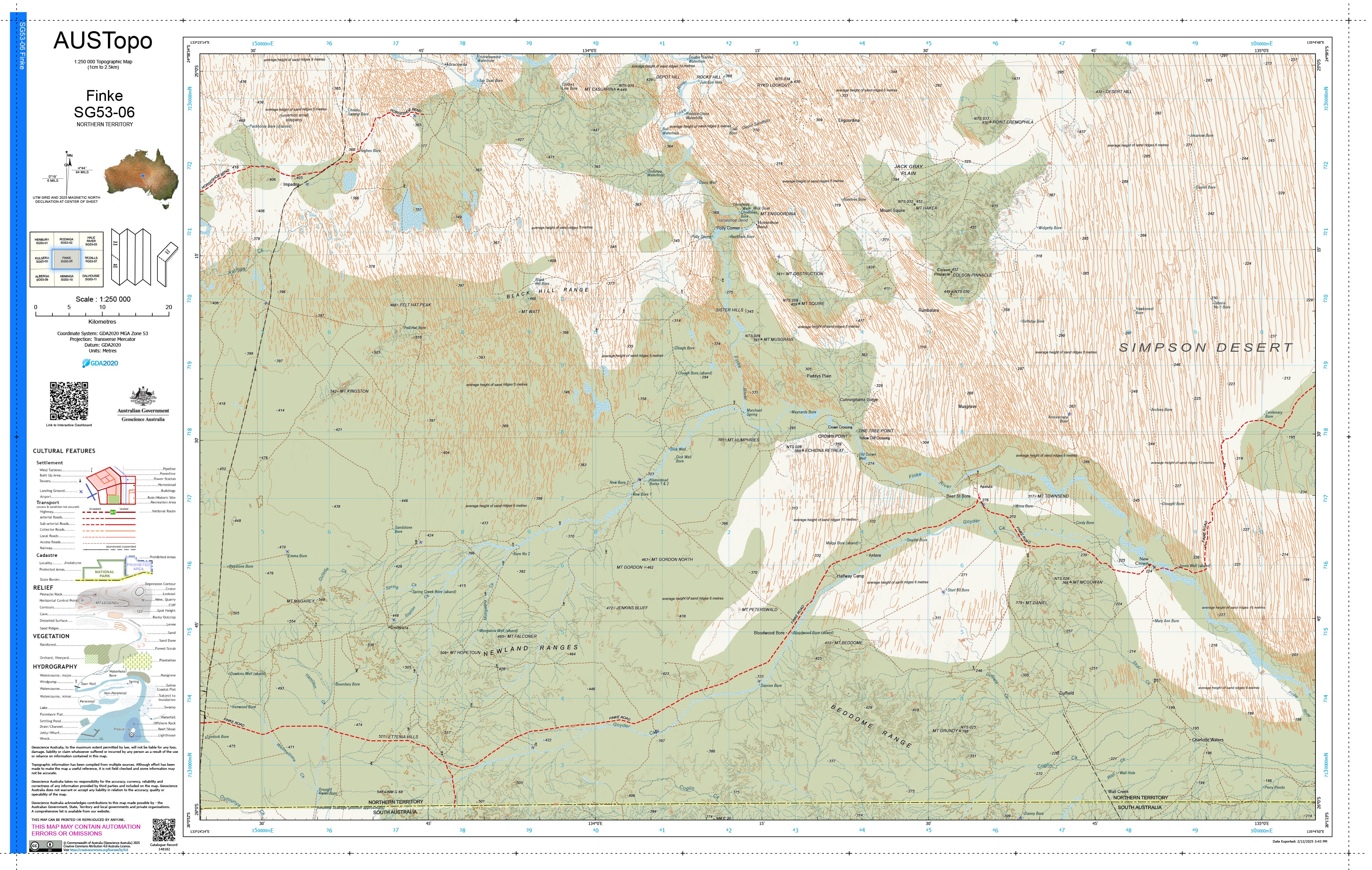 Finke G5306 — AUSTopo 1:250,000 Topographic Map (2025)