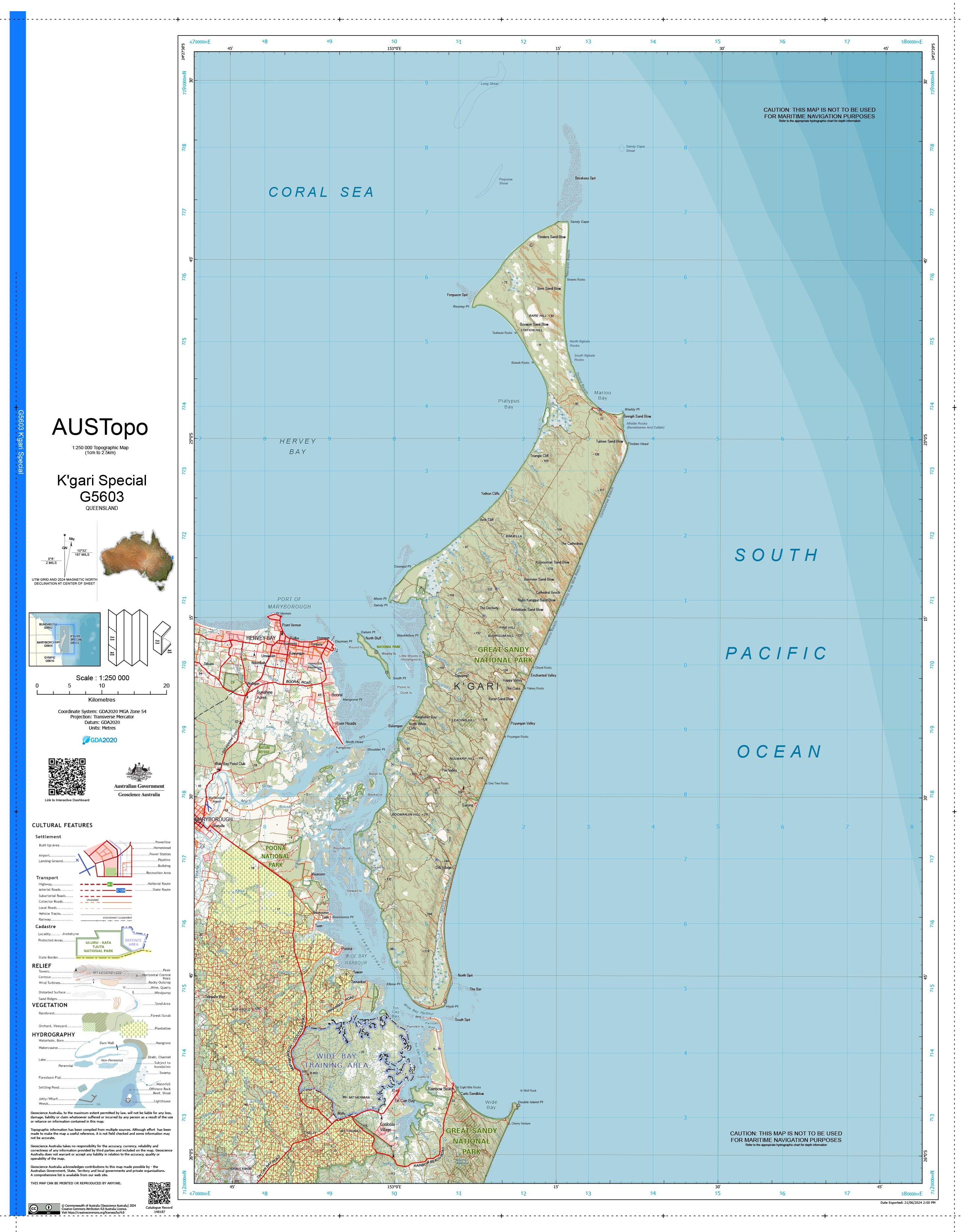 K'gari (Fraser Island) Special G5603 AUSTopo 1:250,000 Map K'gari (Fraser Island) Special G5603 AUSTopo 1:250,000 Map