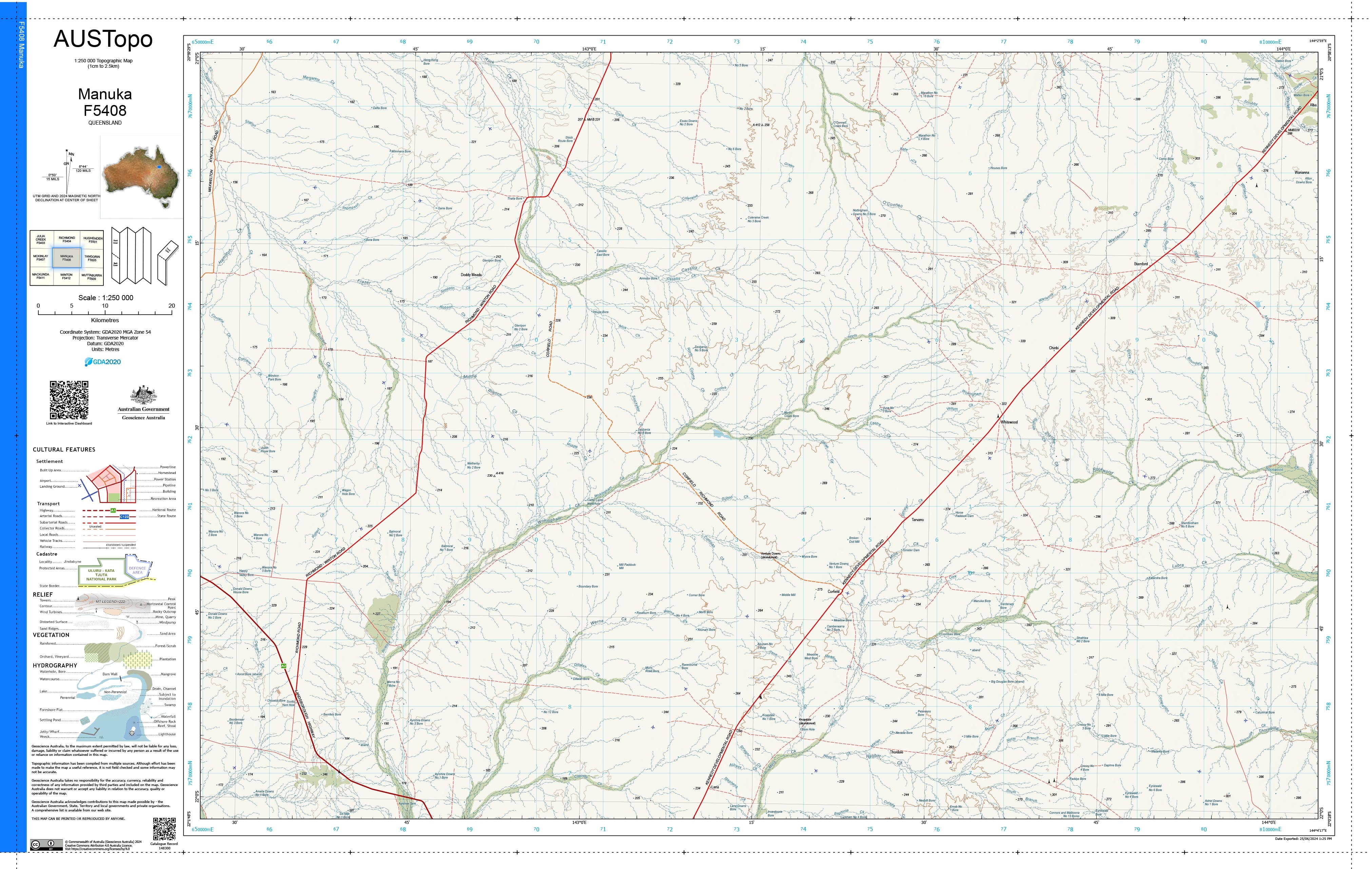 Manuka F5408 AUSTopo 1:250,000 Map Manuka F5408 AUSTopo 1:250,000 Map