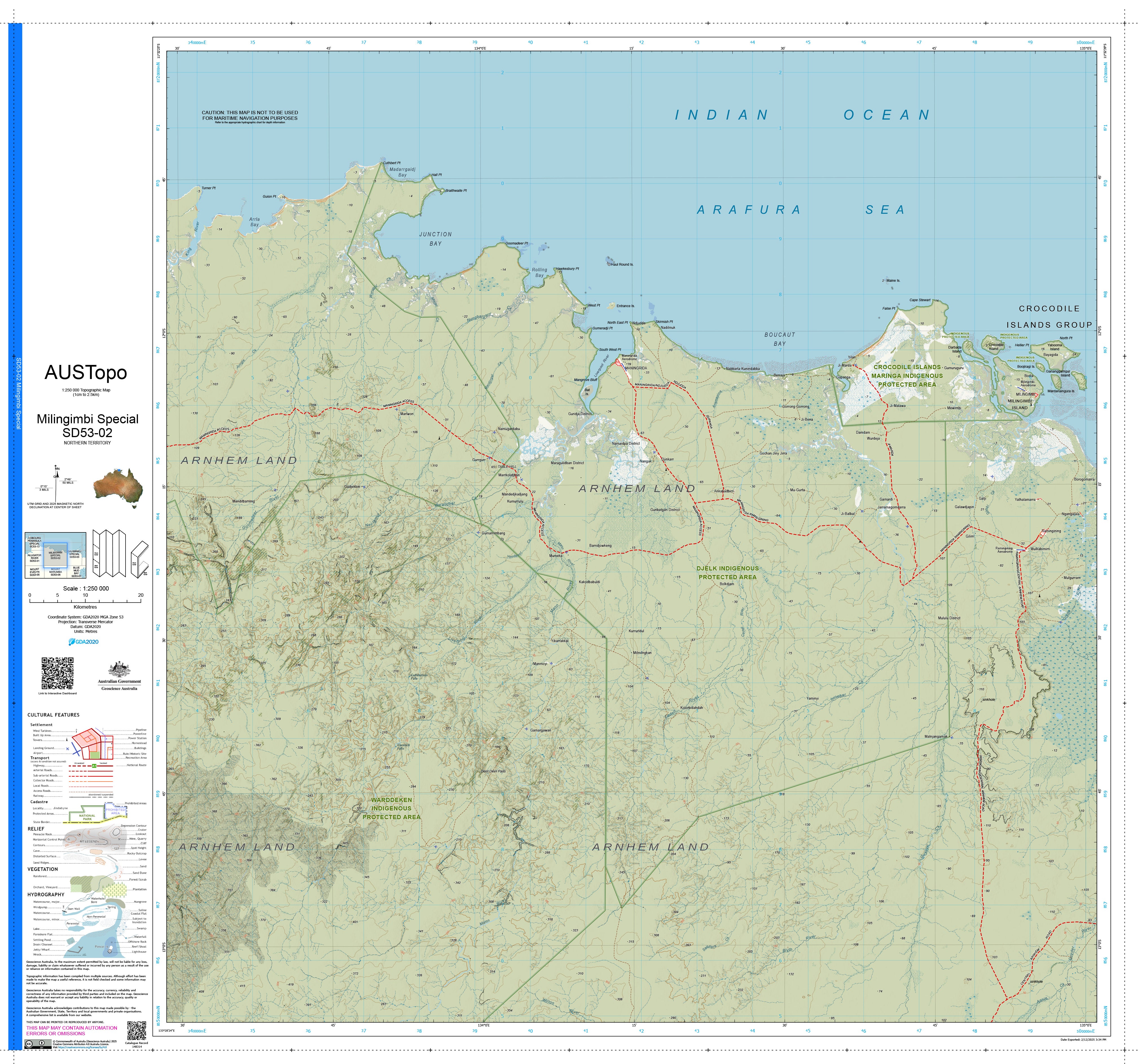 Milingimbi Special D5302 — AUSTopo 1:250,000 Topographic Map (2025)