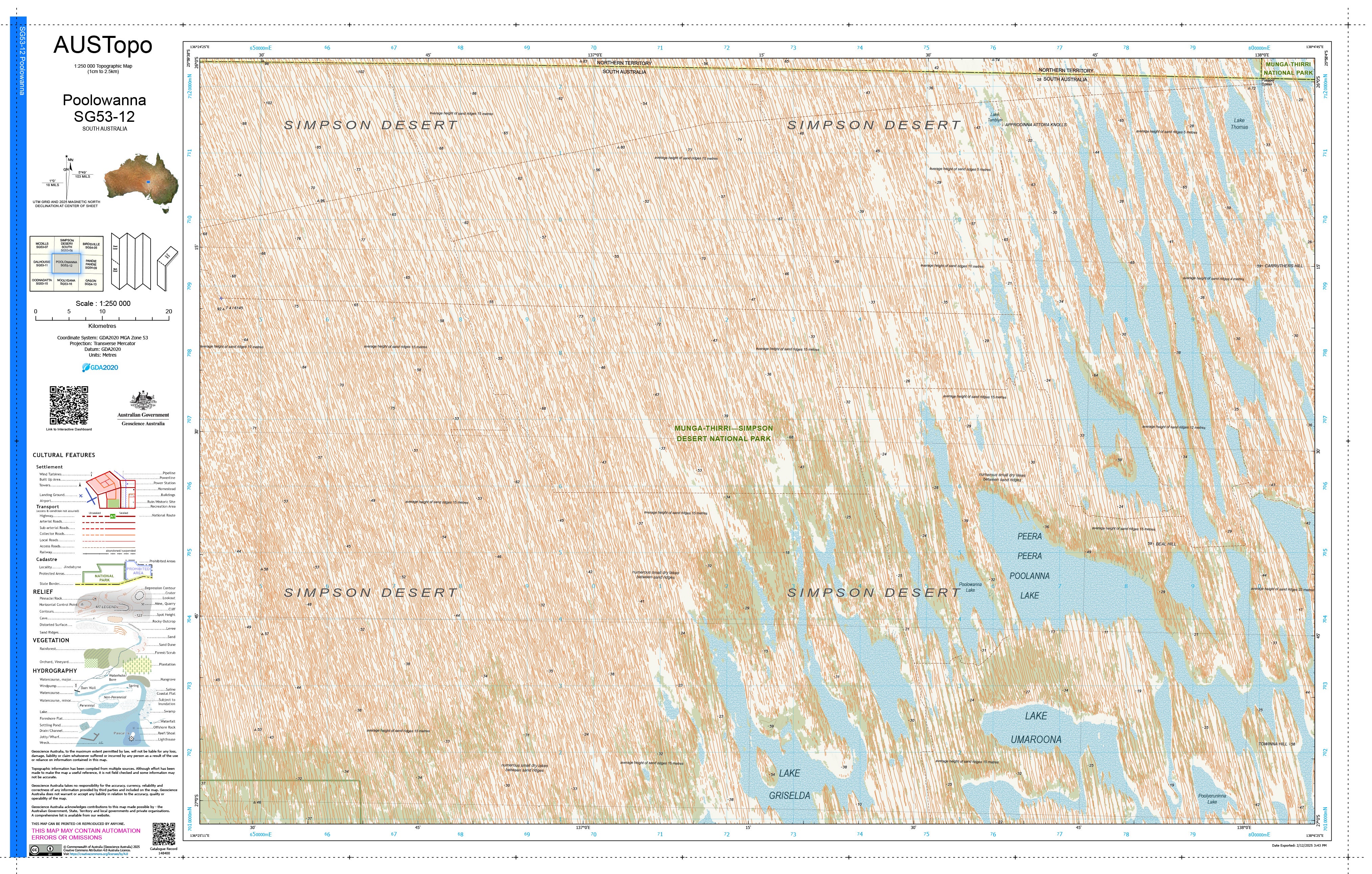 Poolowanna G5312 — AUSTopo 1:250,000 Topographic Map (2025)