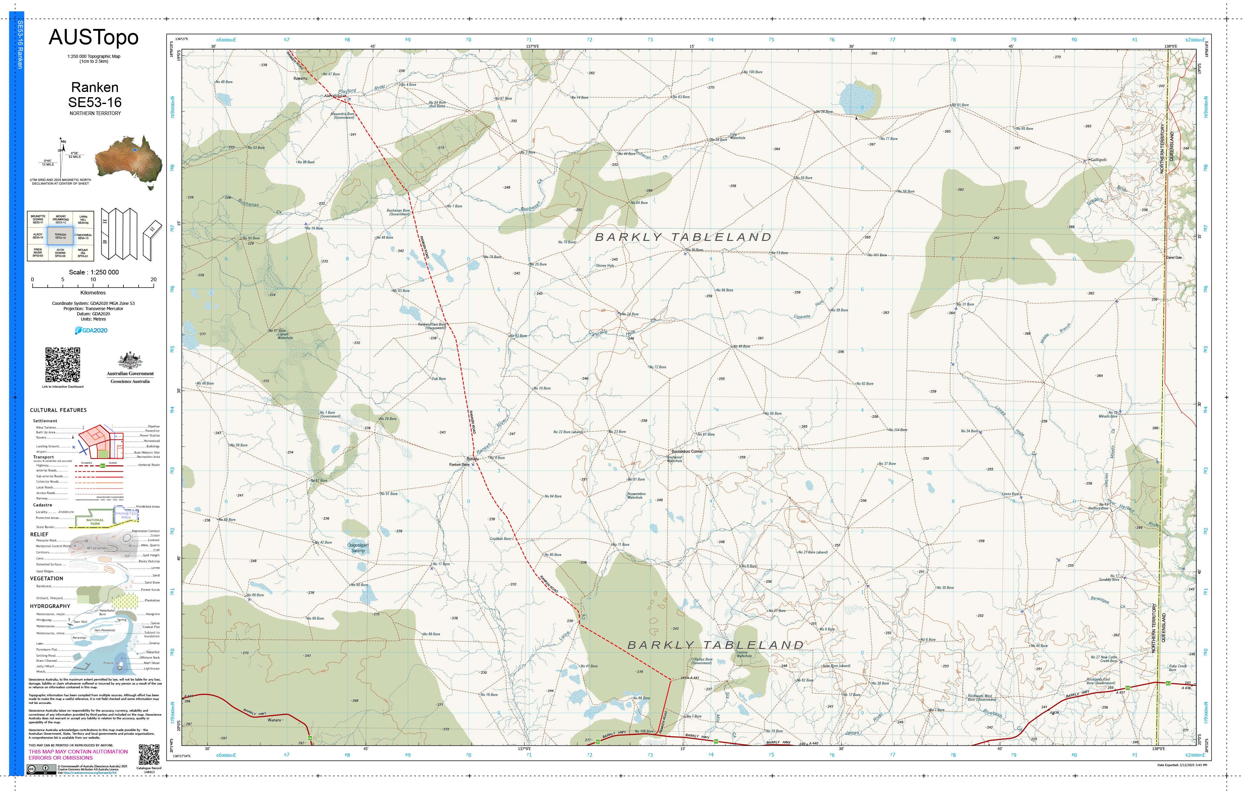 Avon Downs F5304 — AUSTopo 1:250,000 Topographic Map (2025)