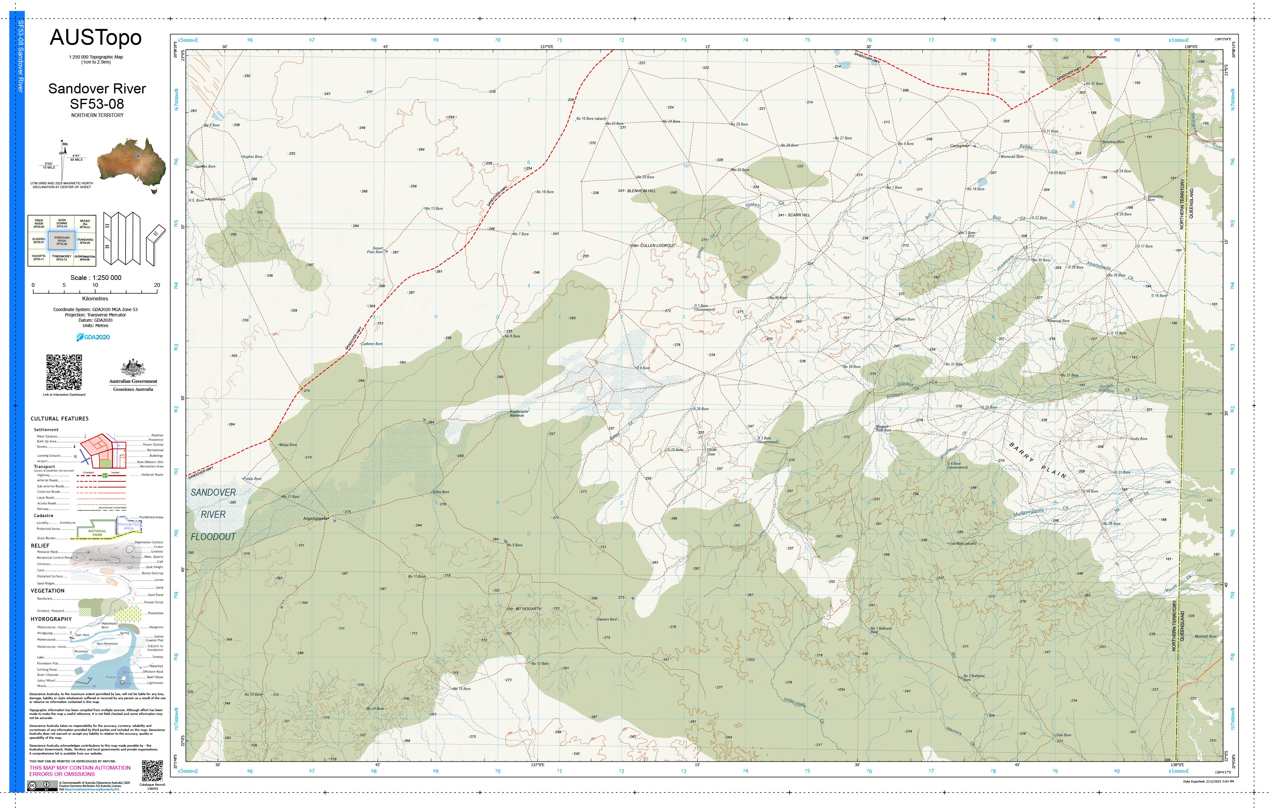 Sandover River F5308 — AUSTopo 1:250,000 Topographic Map (2025)