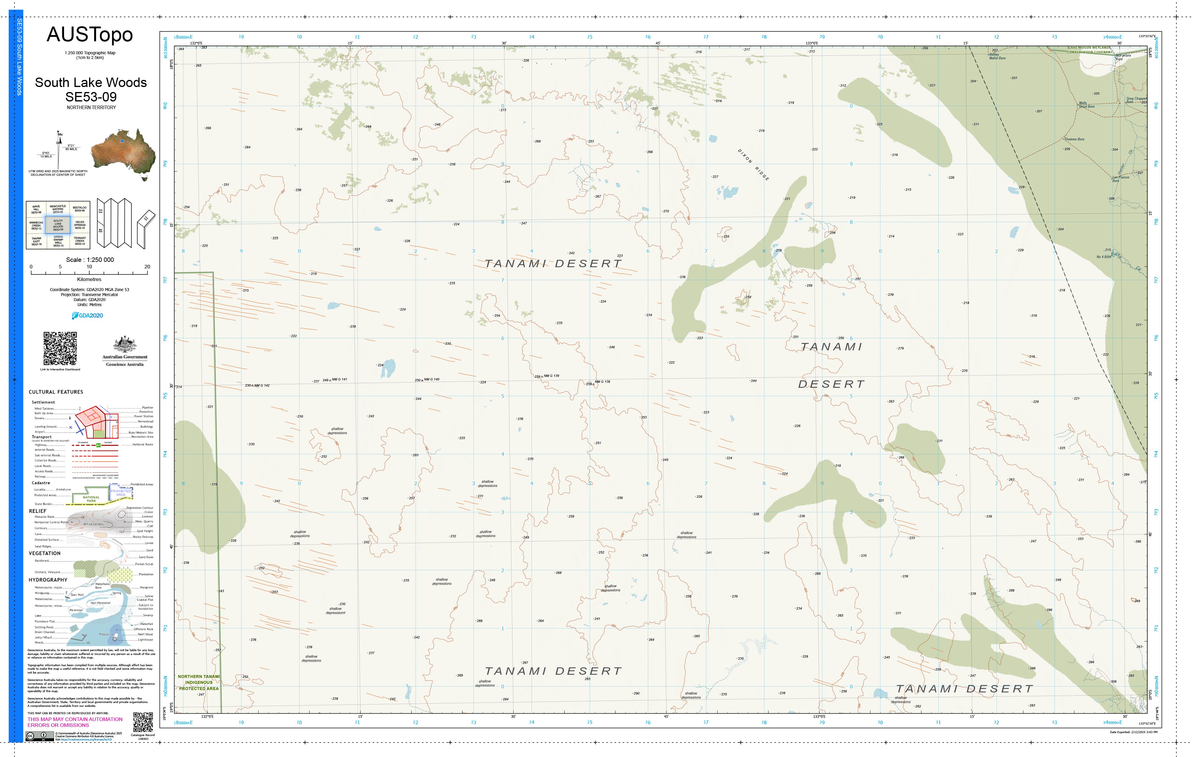South Lake Woods E5309 — AUSTopo 1:250,000 Topographic Map (2025)