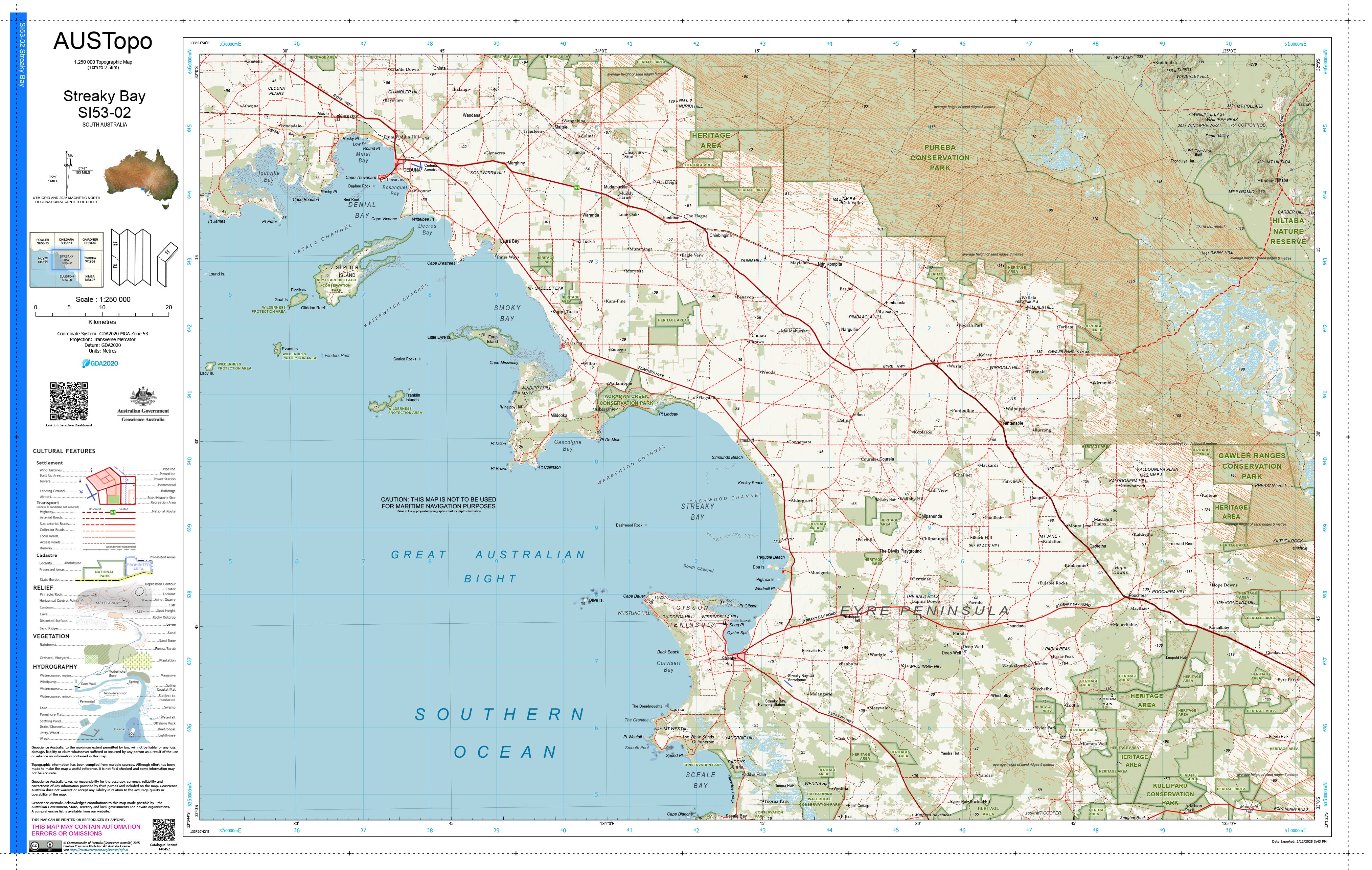 Streaky Bay I5302 — AUSTopo 1:250,000 Topographic Map (2025)