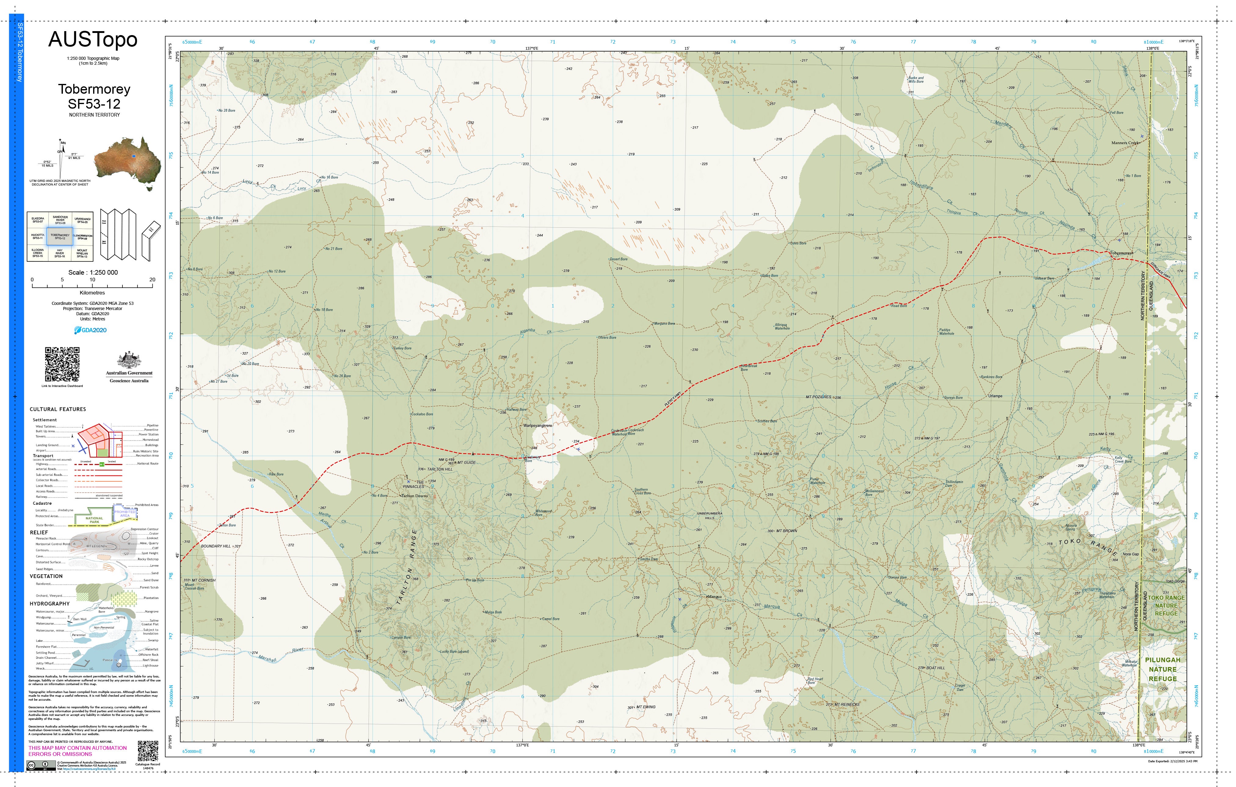Tobermorey F5312 — AUSTopo 1:250,000 Topographic Map (2025)