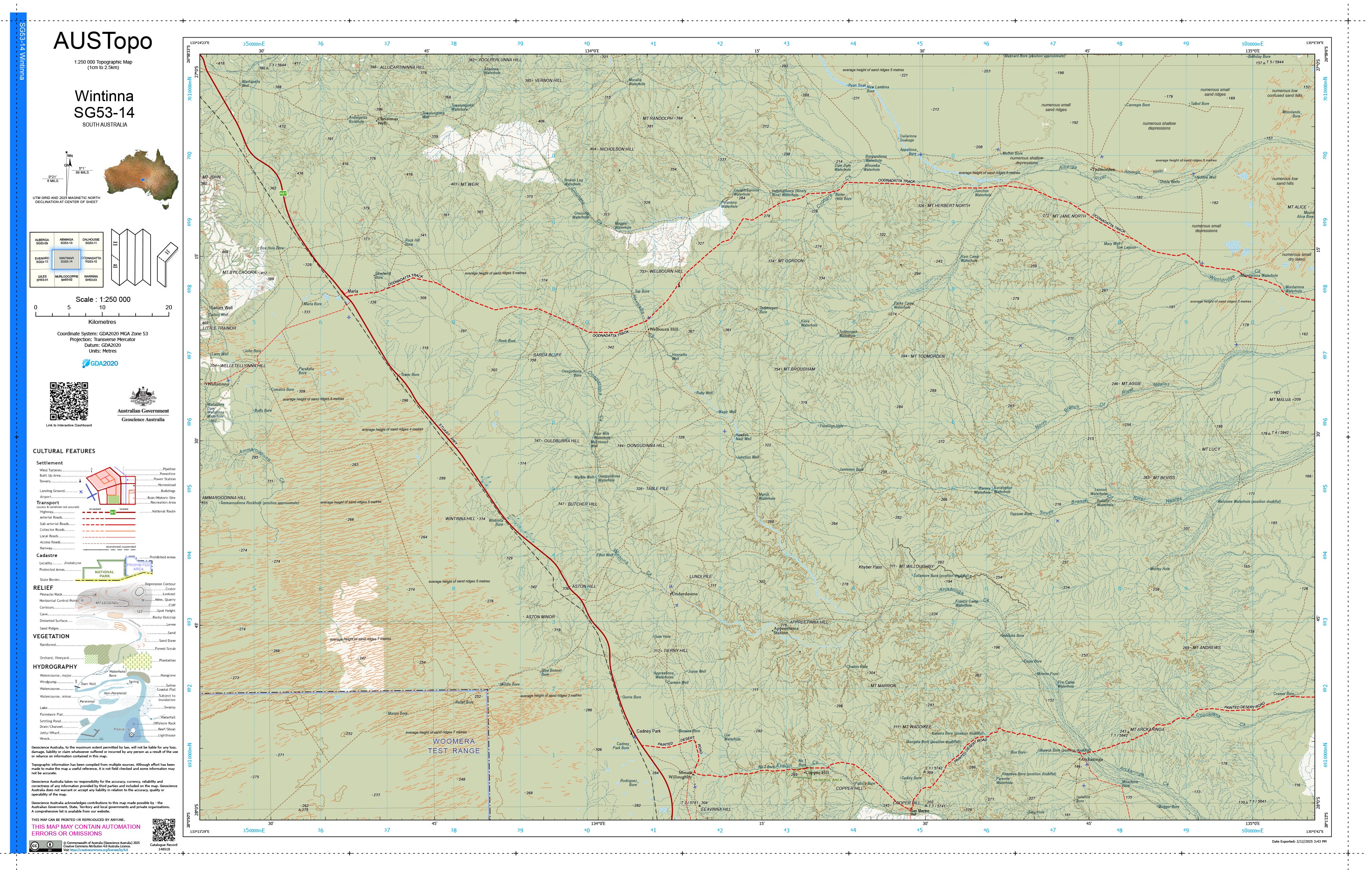 Wintinna G5314 — AUSTopo 1:250,000 Topographic Map (2025)