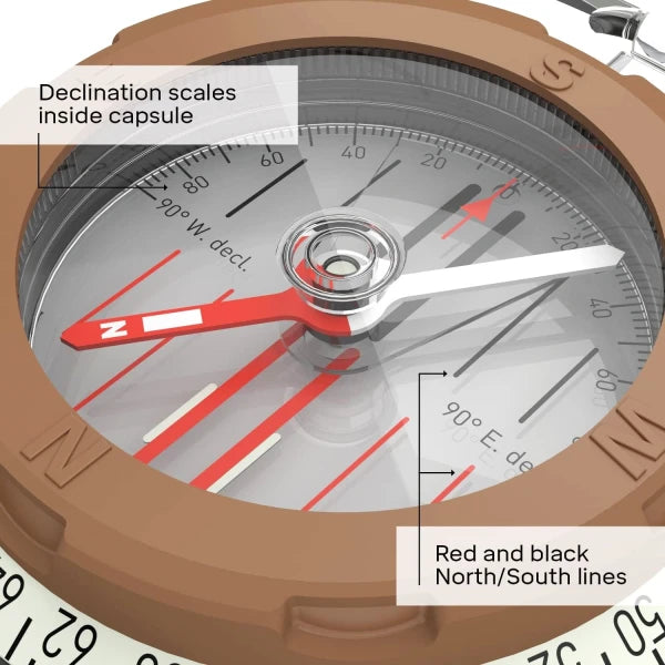 The luminous capsule ring and markings glow for up to 4 hours after light exposure, making this compass perfect for: