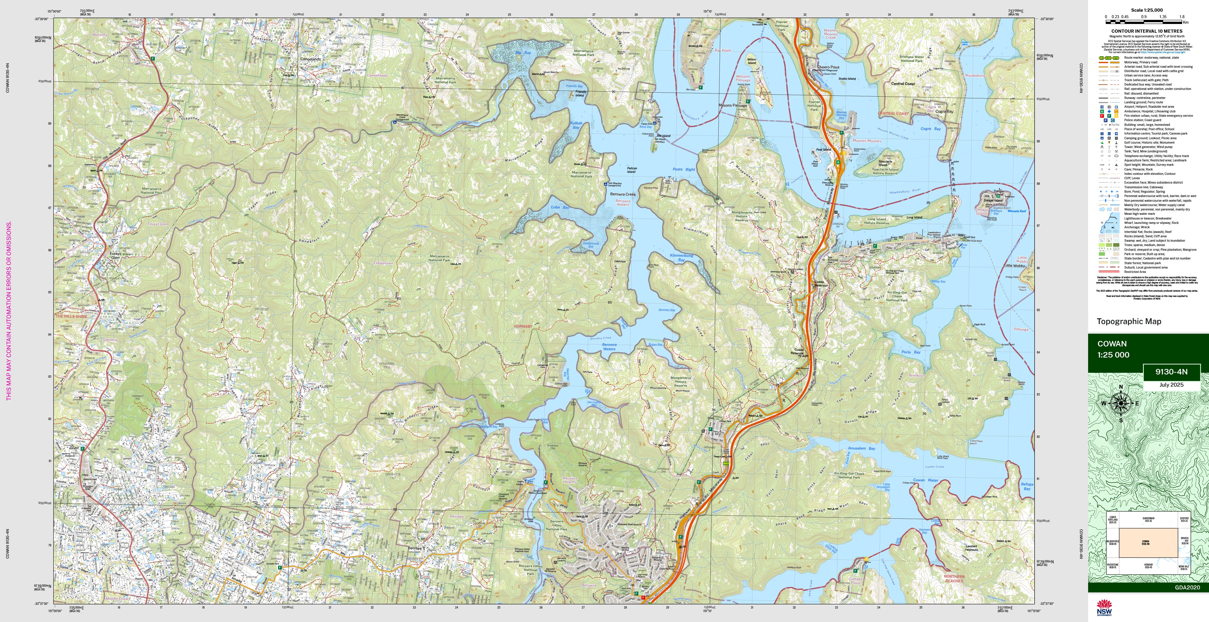 Designed for accuracy, durability, and clarity, the Cowan topographic map provides comprehensive coverage of the Cowan region in New South Wales. Ideal for professionals, outdoor enthusiasts, and educators, this map is part of the authoritative NSW LPI 1:25,000 Topographic Series — offering a precise and richly detailed view of the landscape.