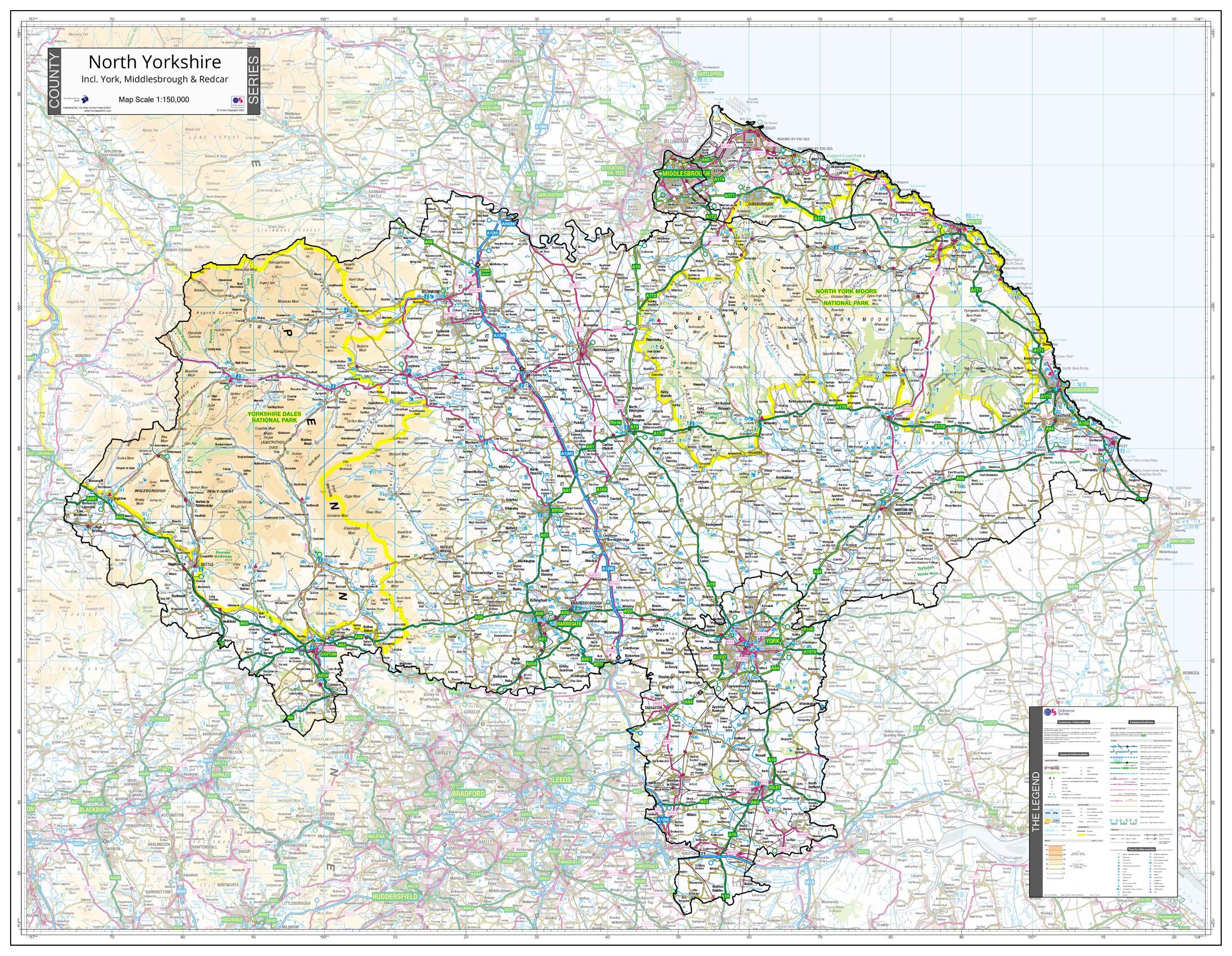 As part of a coordinated series of county maps covering England, Scotland, and Wales, this map of North Yorkshire uses consistent Ordnance Survey cartography to ensure a seamless look when displayed alongside neighbouring counties.