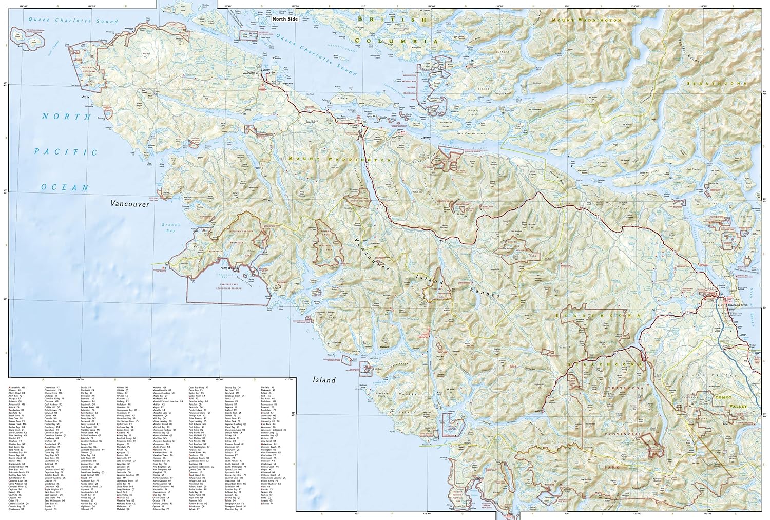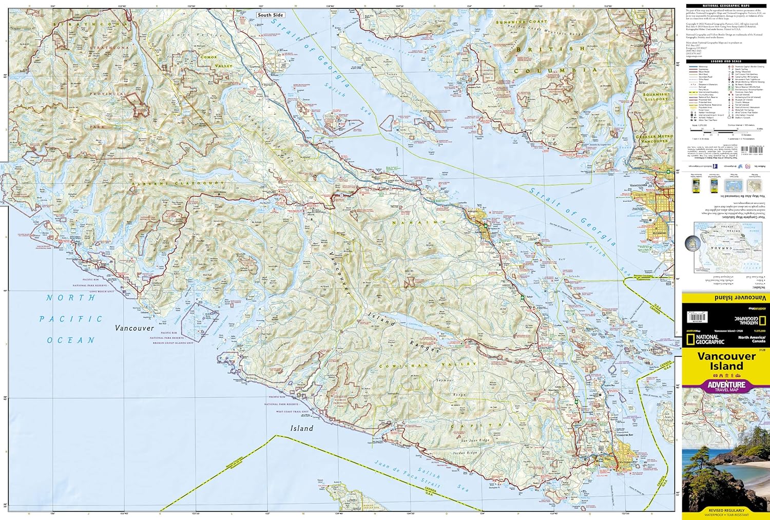 The Vancouver Island Map by National Geographic is a beautifully crafted, highly detailed cartographic guide designed for travelers, adventurers, and nature enthusiasts exploring Canada’s rugged Pacific coast. Printed on durable, waterproof, and tear-resistant material, the map showcases Vancouver Island’s diverse landscapes—from lush rainforests and alpine peaks to wild beaches and coastal fjords. It highlights key features such as Pacific Rim National Park Reserve, Strathcona Provincial Park, and the Juan de Fuca Marine Trail, as well as charming towns including Victoria, Tofino, Ucluelet, and Campbell River.