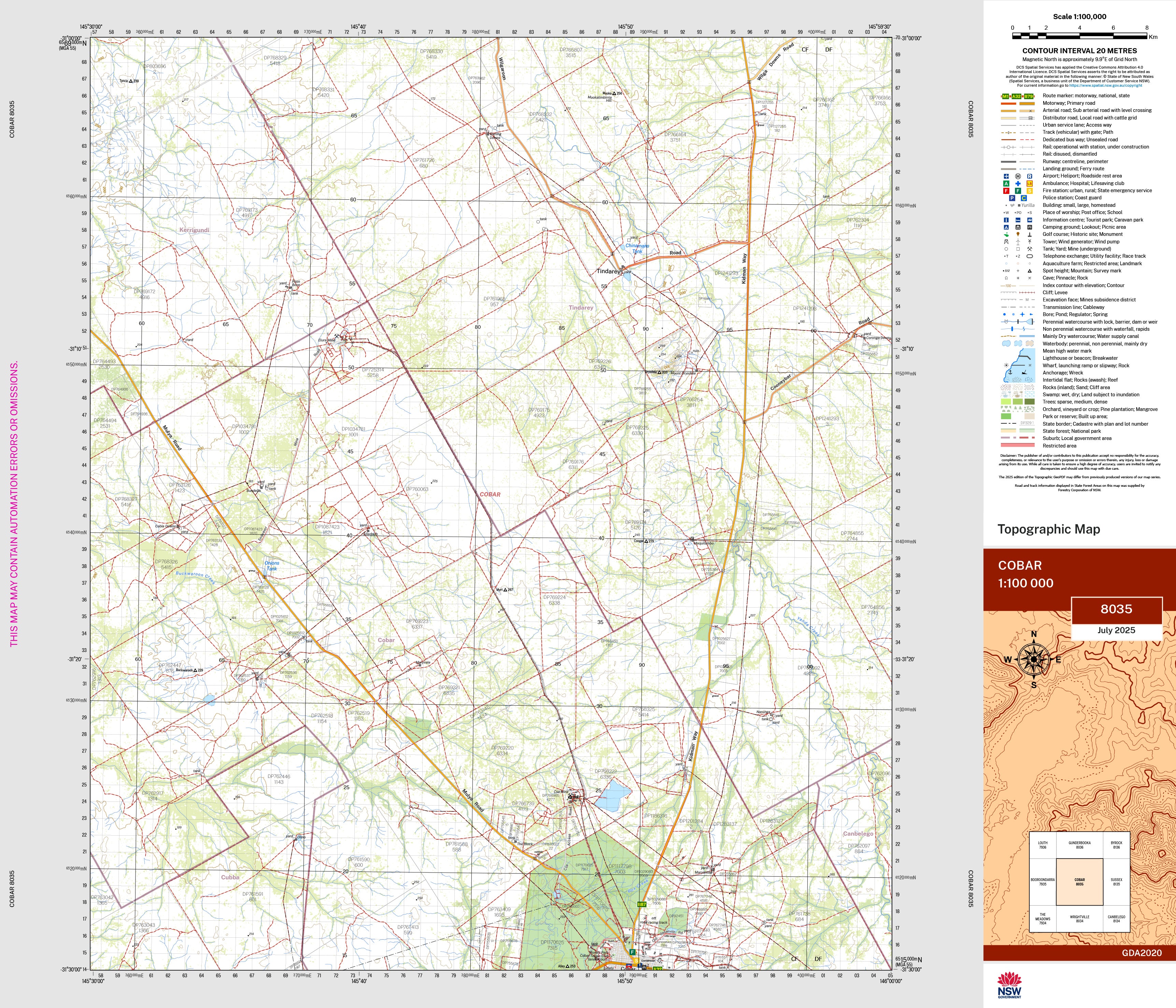Cobar 8035 Topographic Map 1:100k
