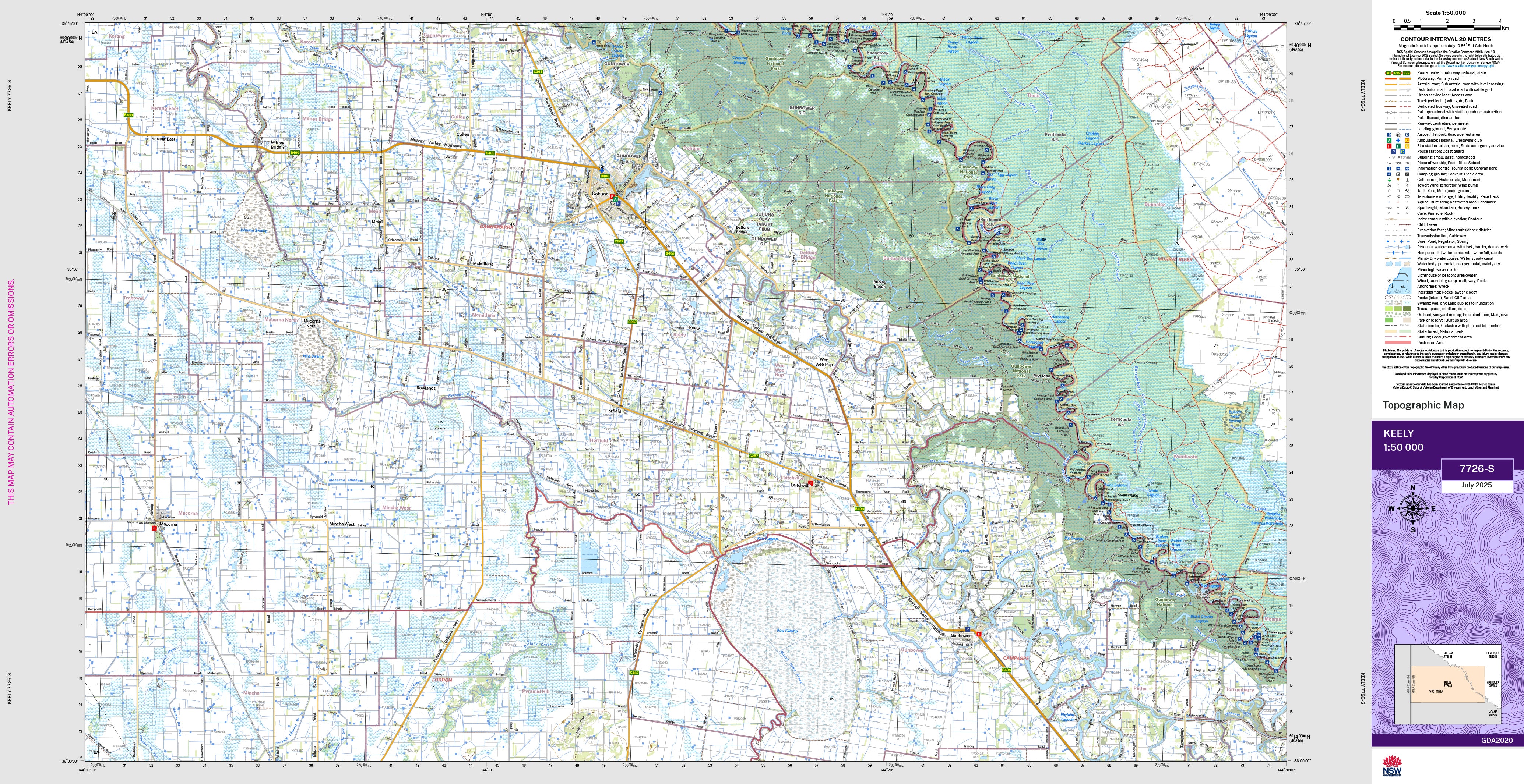The Keely 1:50,000 scale New South Wales topographic map shows contours, streams, roads, tracks, buildings, place names, points of interest, vegetation, selected administrative boundaries and much more.
