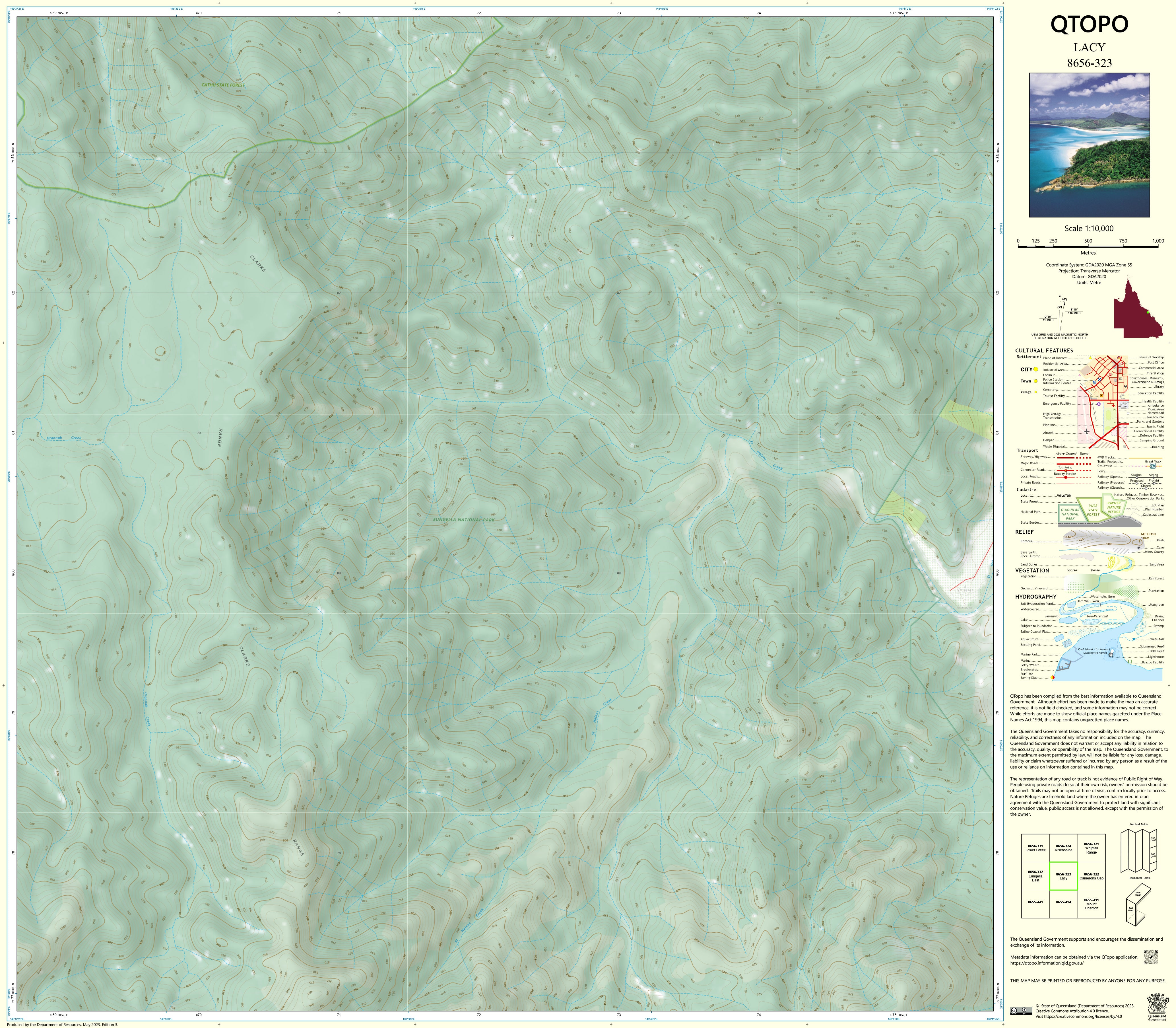Produced by the Queensland Department of Resources, the QTopo 8656-323 — Lacy sheet offers authoritative contouring, accurate cadastral boundaries, and detailed hydrological and infrastructure mapping. This is a trusted reference for anyone requiring clarity, accuracy, and reliability in the field.