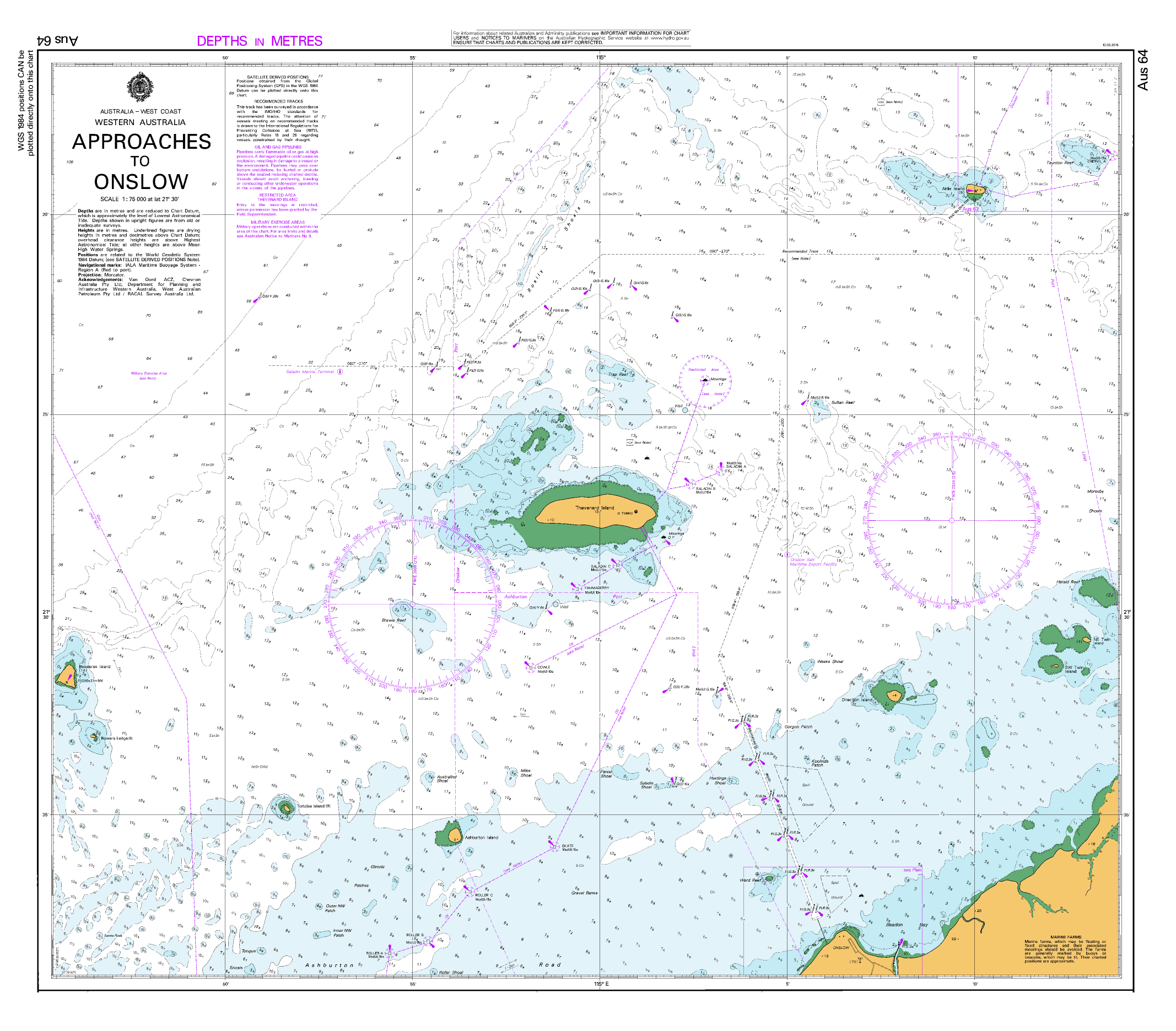 AUS 64 — Approaches to Onslow, WA Nautical Chart