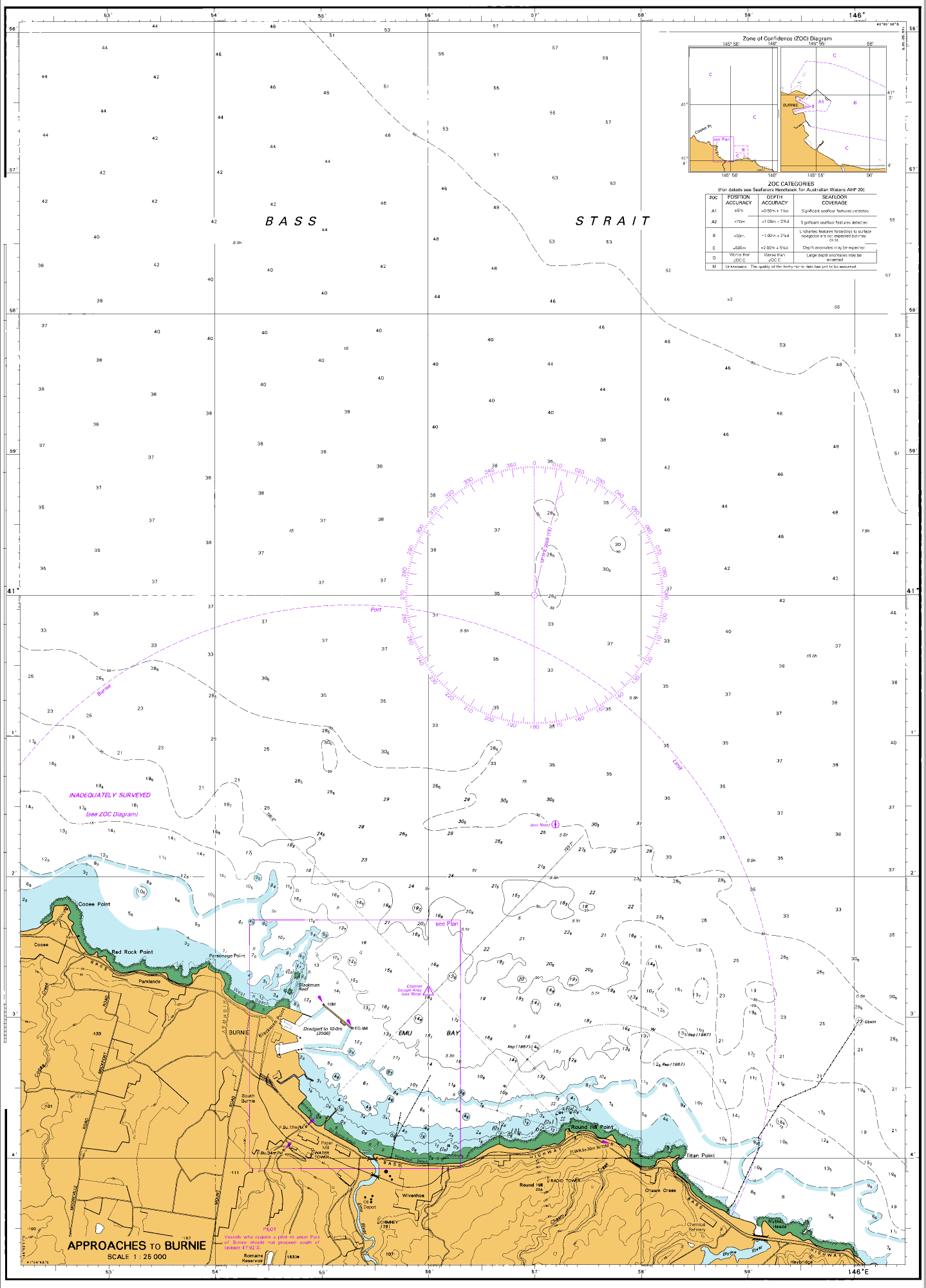 🧭 Built for harbour approach — Main sheet at 1:25,000 for the Burnie sectors.