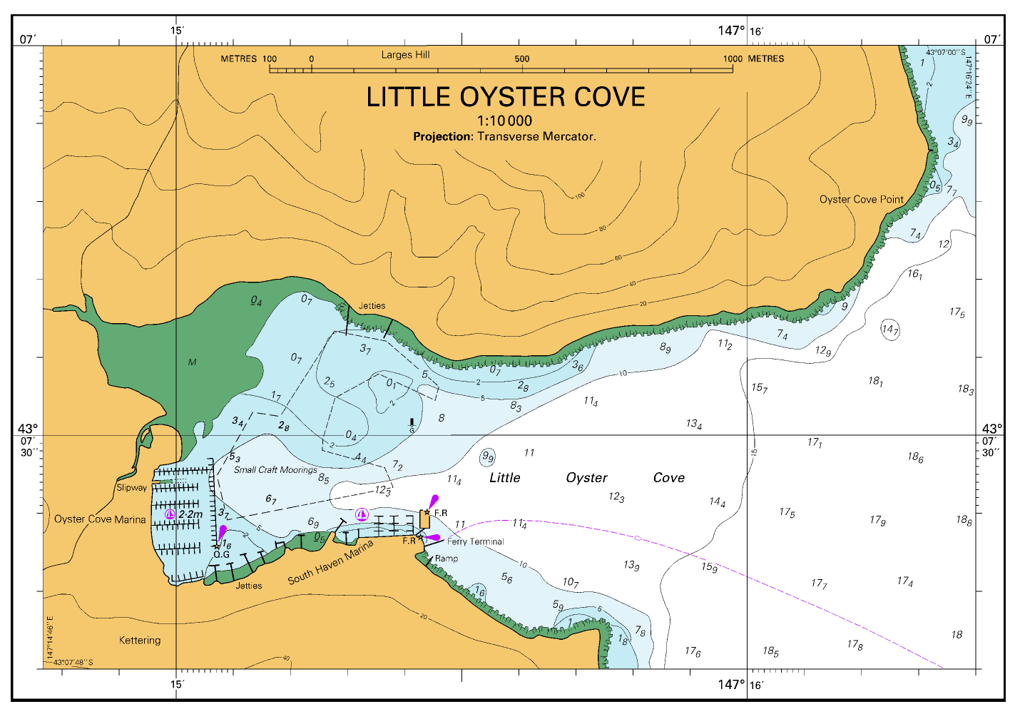 North / South Limits | 43°00.00′ S / 43°41.80′ S |