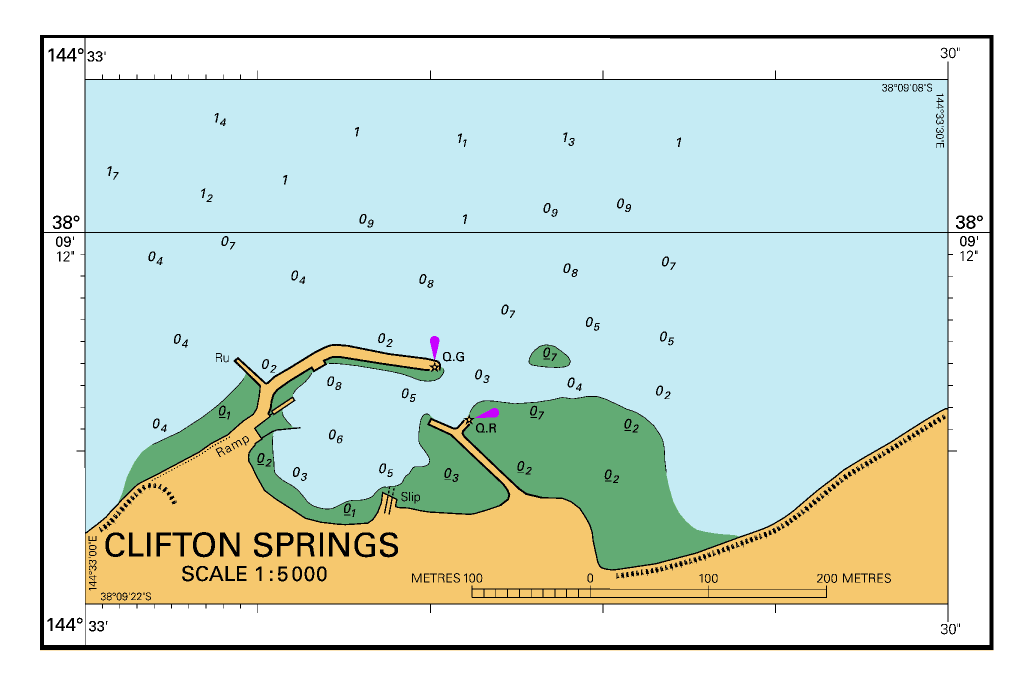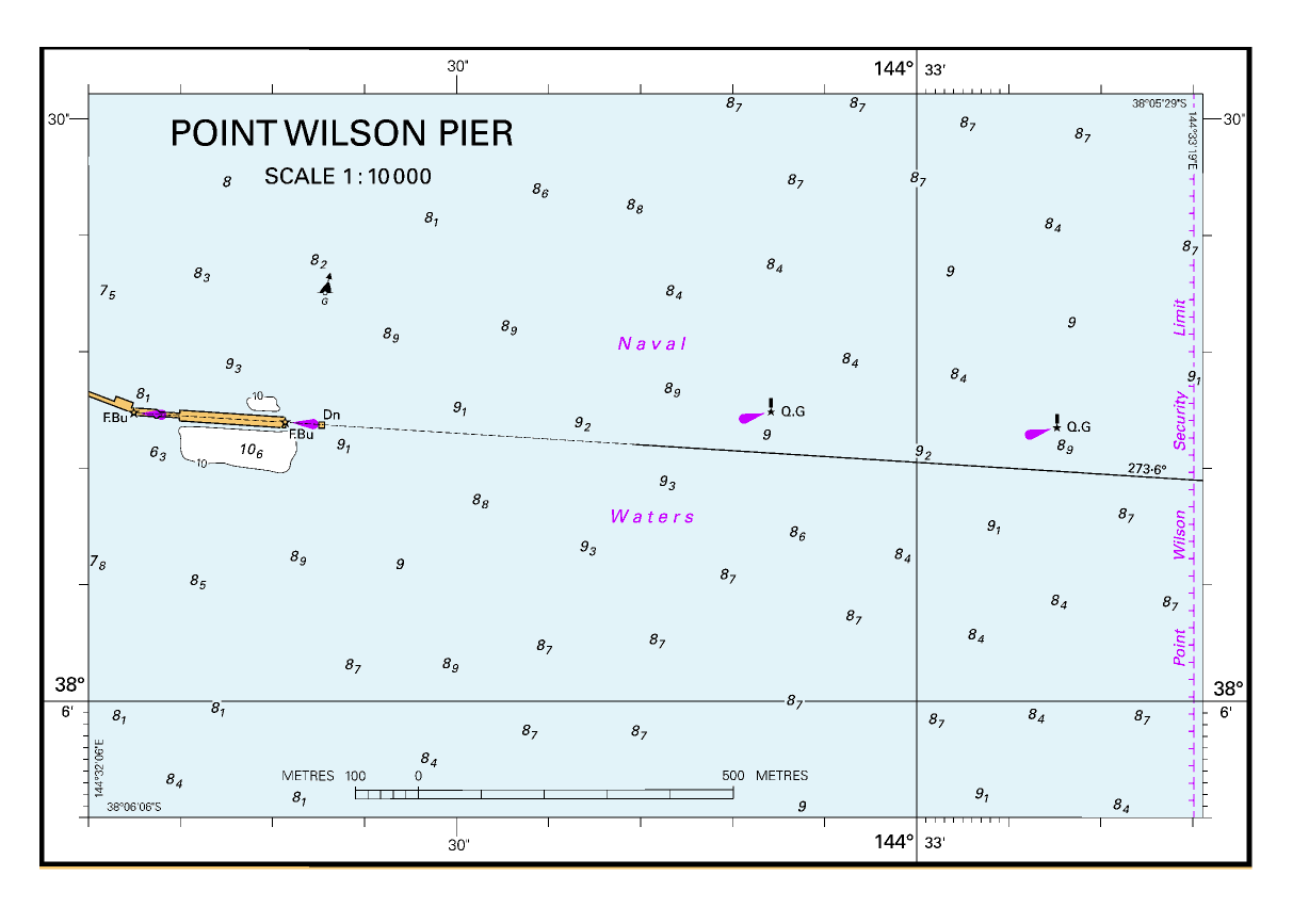 | North / South Limits | 37°59.10′ S / 38°12.30′ S |