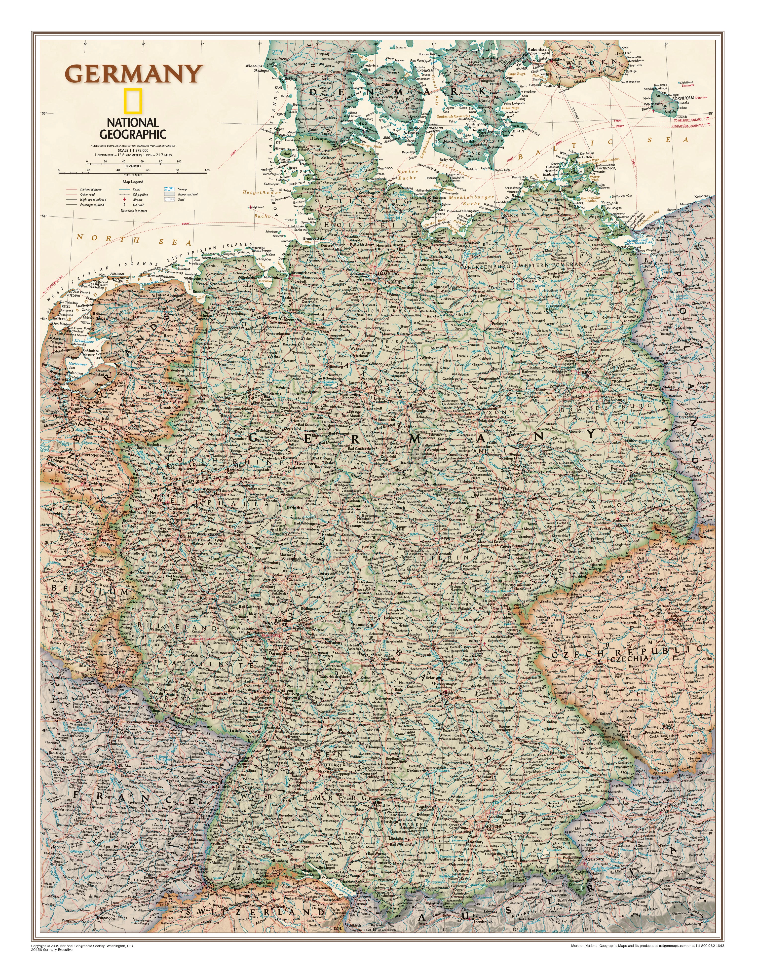 🇩🇪 Germany Executive Antique Style Wall Map – National Geographic