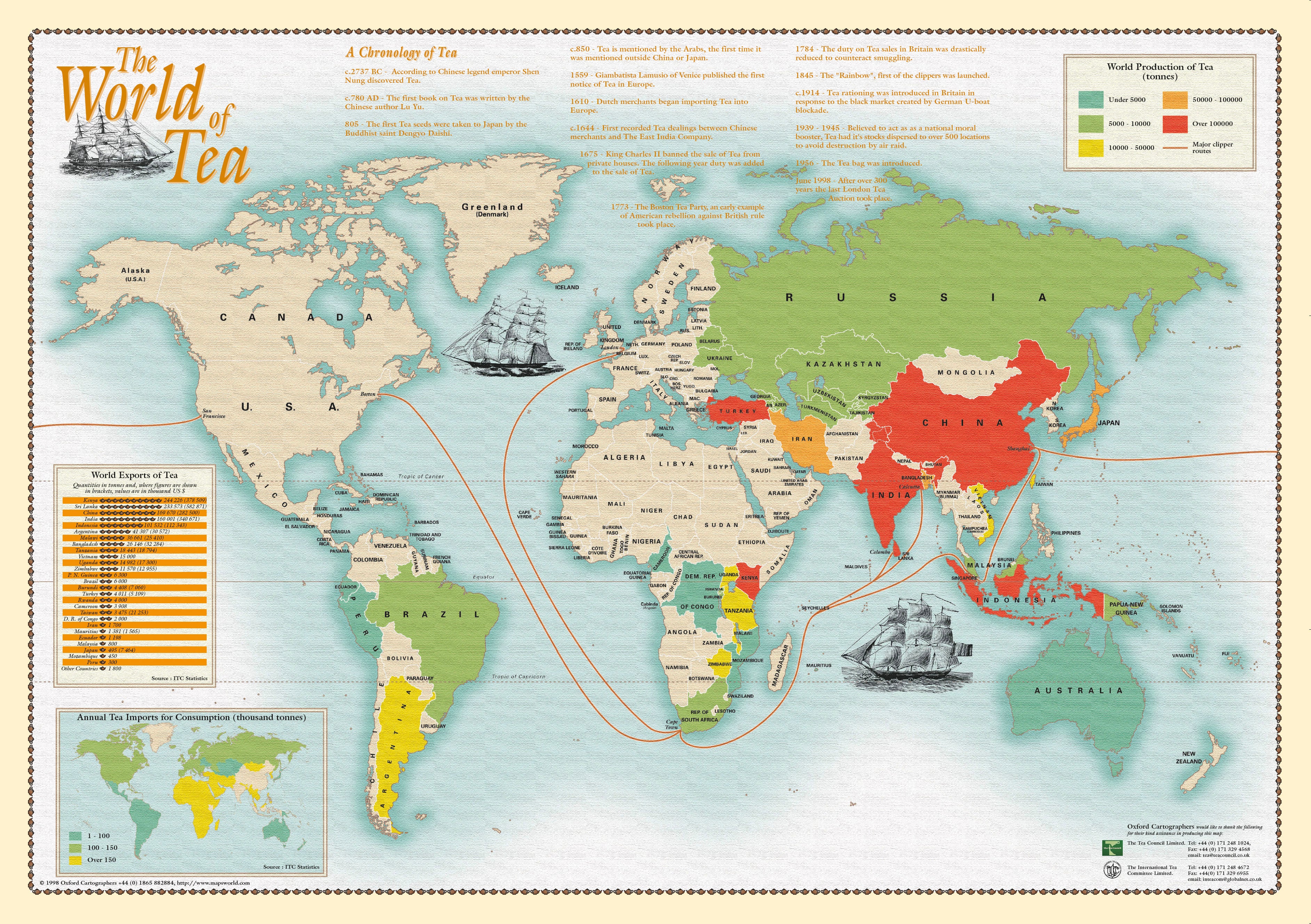 Tea is more than a drink—it’s a story that begins in the soil and ends in the cup. The World of Tea Map by Oxford Cartographers captures that story in rich cartographic detail, showing where tea is grown, traded, and treasured around the globe.