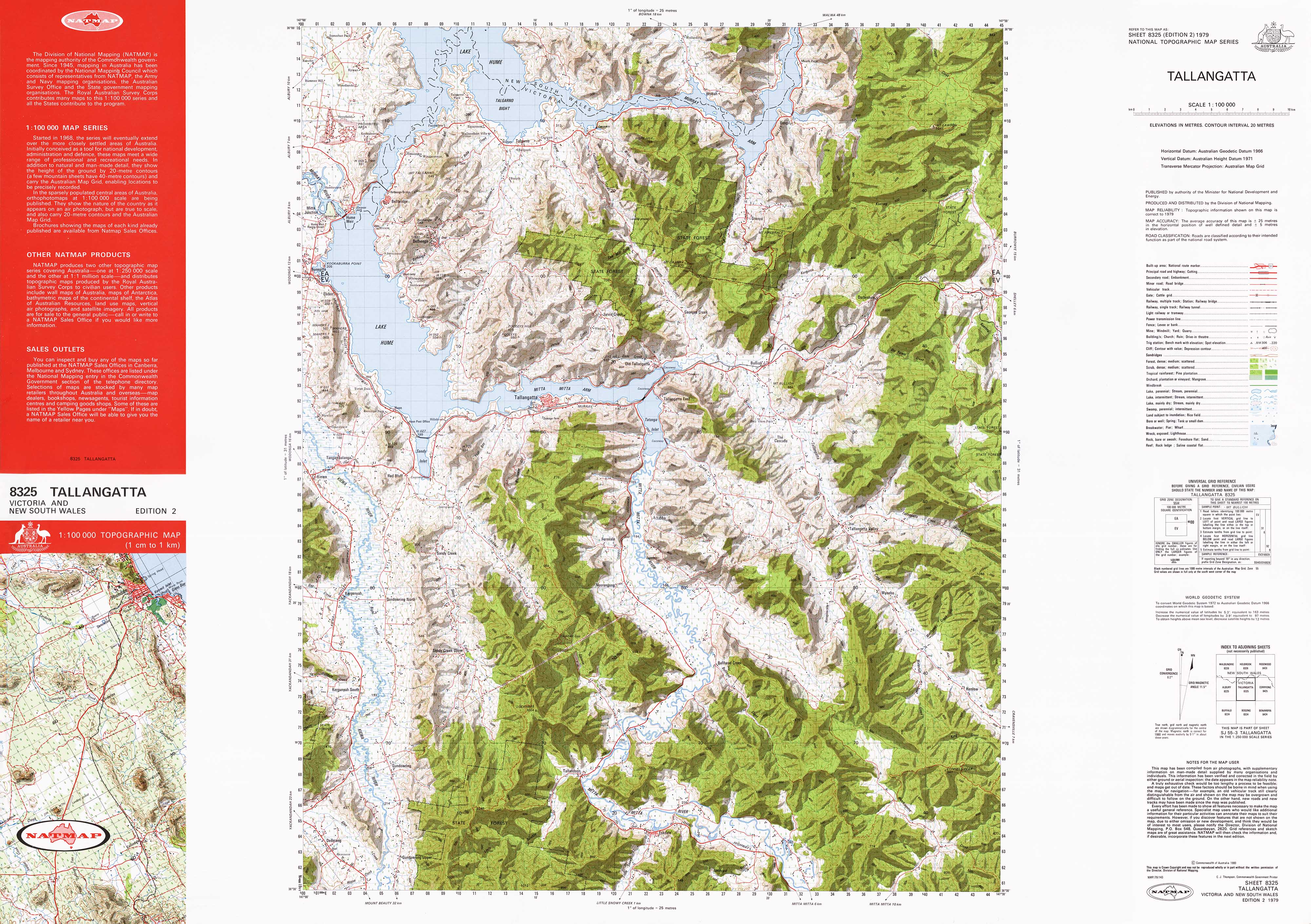At a scale of 1:100,000, 1cm on the map represents 1km on the ground. Each map covers a minimum area of 0.5 degrees longitude by 0.5 degrees latitude or about 54 kilometres by 54 kilometres. The contour interval is 20 metres. Many maps are supplemented by hill shading.