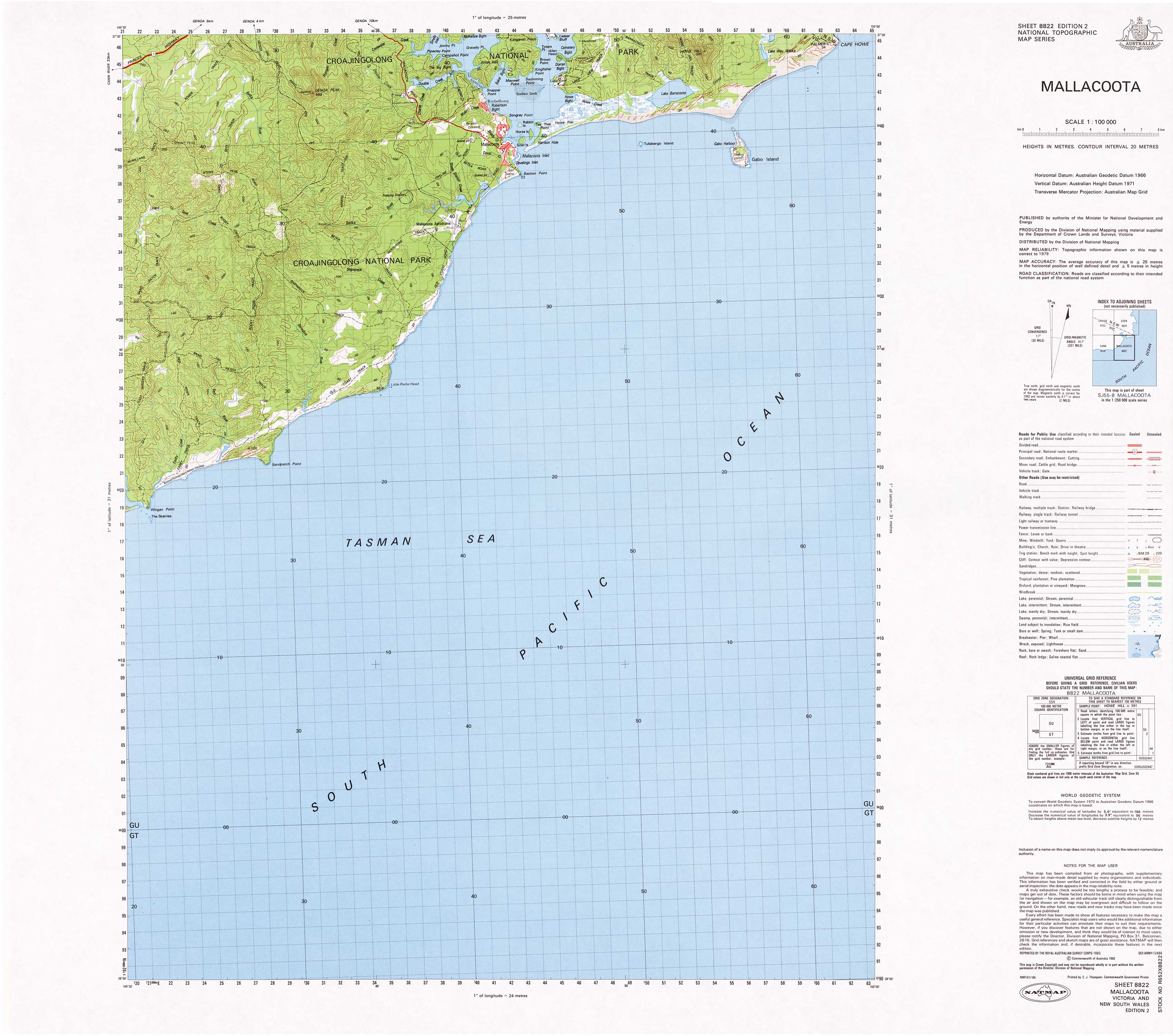 At a scale of 1:100,000, 1cm on the map represents 1km on the ground. Each map covers a minimum area of 0.5 degrees longitude by 0.5 degrees latitude or about 54 kilometres by 54 kilometres. The contour interval is 20 metres. Many maps are supplemented by hill shading.