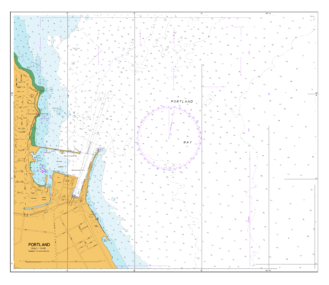 🧭 Built for harbour approach — Main sheet at 1:100,000 for the Portland sectors.
