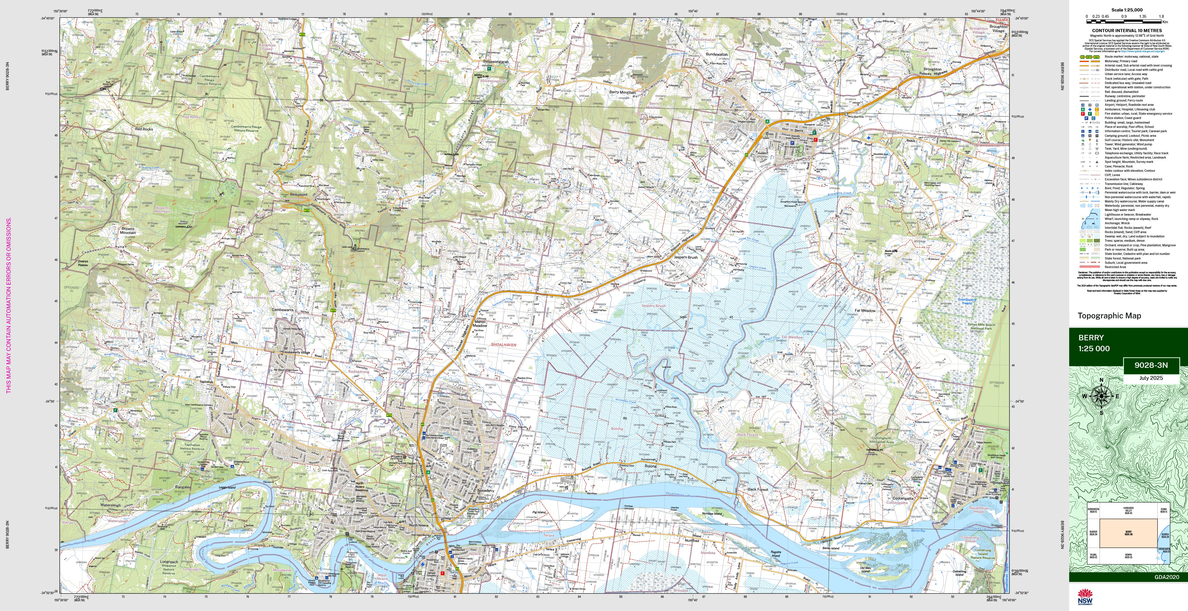 The Berry topographic map by LPI shows contours, streams, roads, tracks, buildings, place names, points of interest, vegetation, selected administrative boundaries and much more.