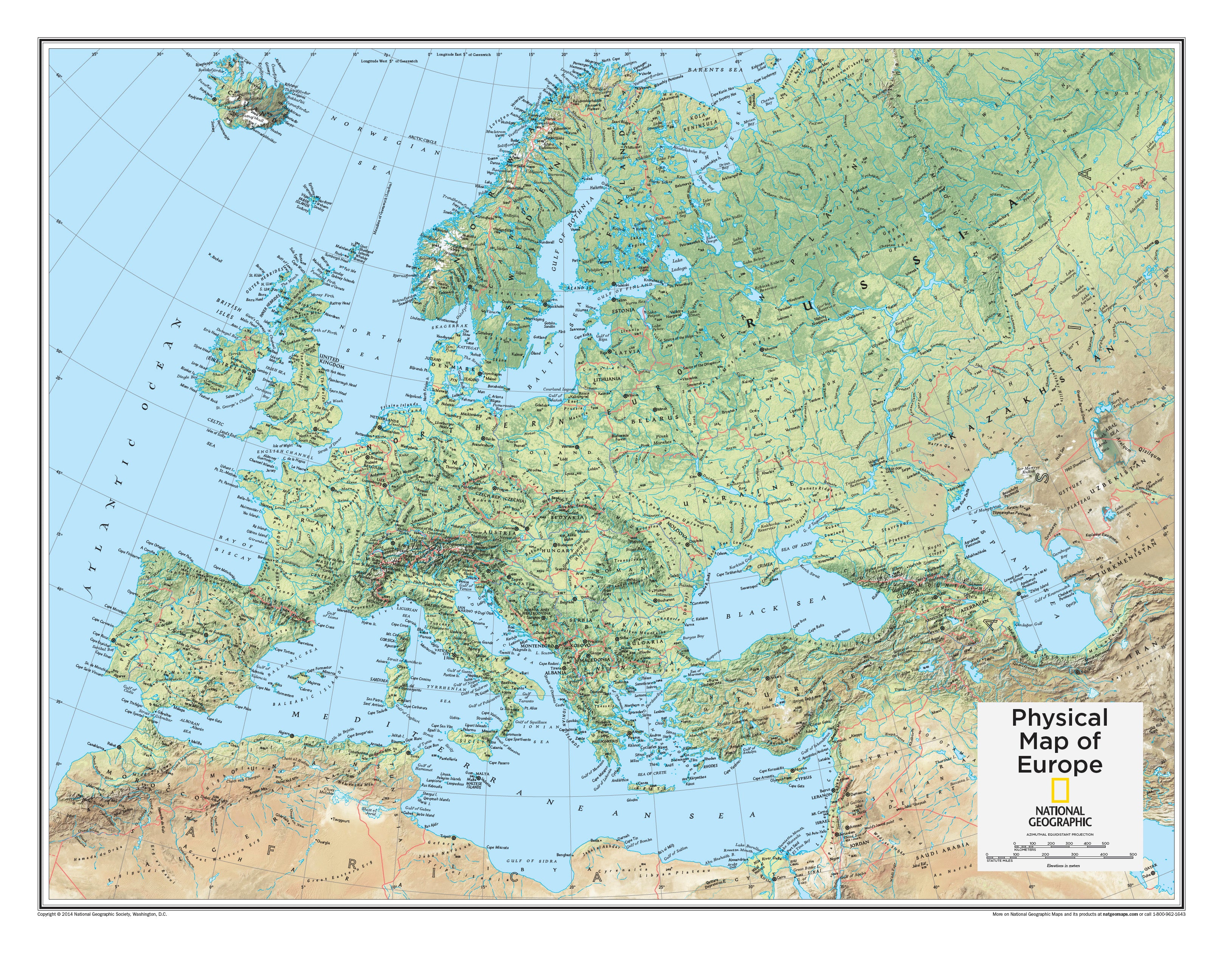 Experience the grandeur of Europe as nature designed it — a continent shaped by glaciers, carved by rivers, and crowned by mountain ranges. The National Geographic Europe Physical Wall Map offers a breathtaking portrayal of the continent’s landforms, from the icy peaks of the Alps to the sweeping plains of Eastern Europe and the rugged peninsulas of the Mediterranean.