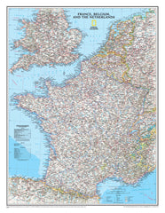 Bring the heart of Western Europe to your wall with this elegant political map of France, Belgium, and the Netherlands, designed and published by National Geographic. Featuring updated infrastructure, clear cartographic detail, and timeless design, this map is both informative and decorative—perfect for home, office, classroom, or study.