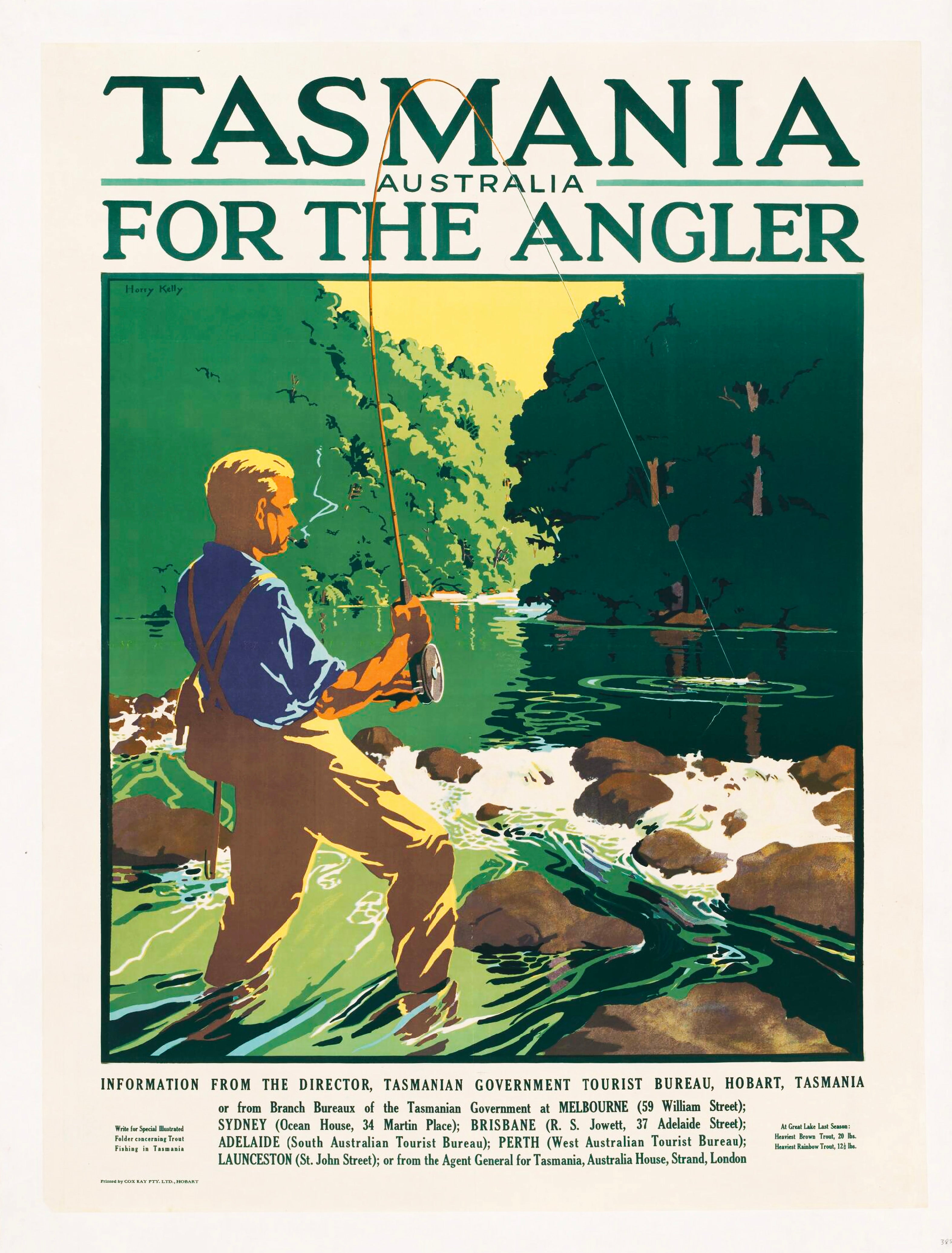 A beautiful replica of an original poster promoting fishing in Tasmania circa 1950. This iconic poster captures the heyday of travel - a charming addition to any room.