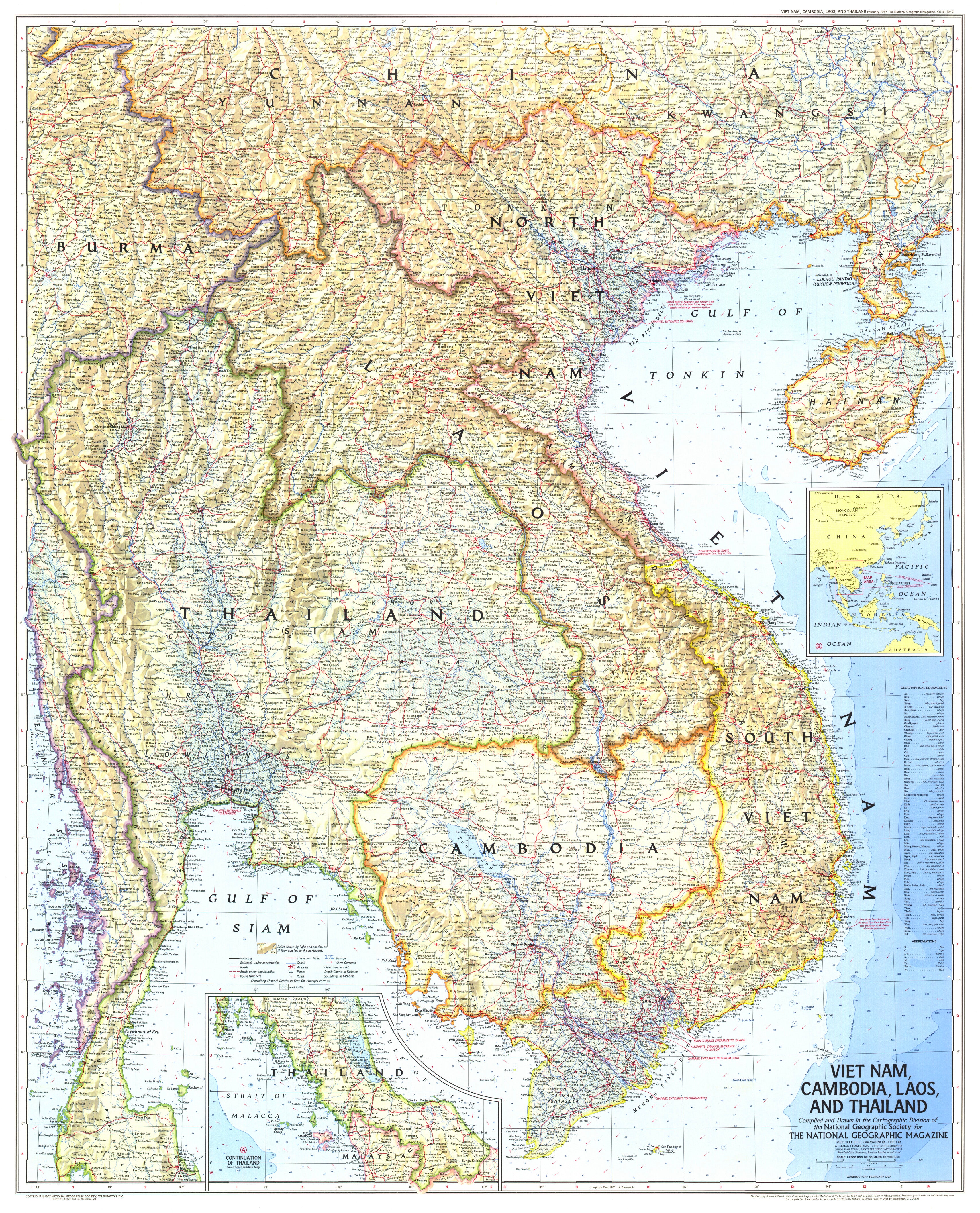 Vietnam, Cambodia, Laos & Thailand — National Geographic Wall Map (1967)